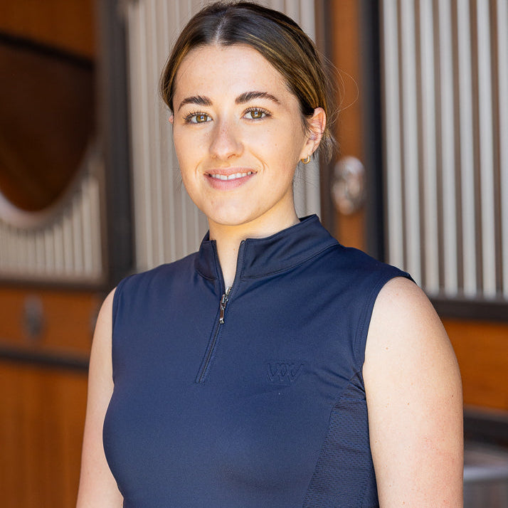 Woof Wear Ladies Sleeveless Tech Riding Shirt - Navy / UK 6 is backordered and will ship as soon as it is back in stock.