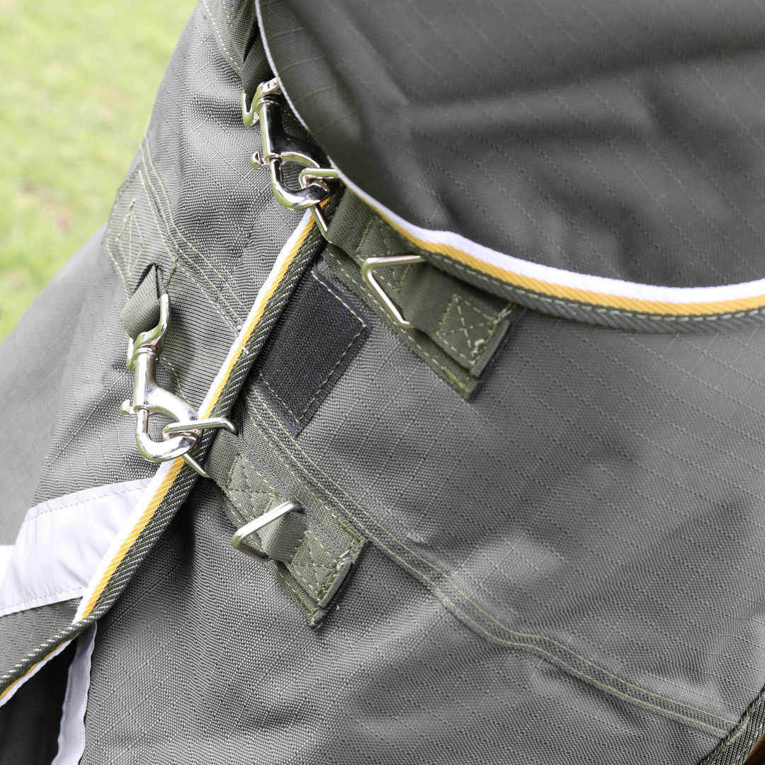 A sophisticated rug range providing enhanced protection and luxurious comfort for the turned out horse. Balancing optimum strength-to-weight ratio with a ripstop weave to prevent the spread of small tears, Highlander Plus rugs offer excellent resilience. Ideal for temperate field days the 50g fill helps control inner moisture build up and offers light insulation. Breathability and comfort is teamed with deep shoulder gussets for freedom and clip chest straps for fitting speed. The combo rug neck fastens with quick fit touch close straps.