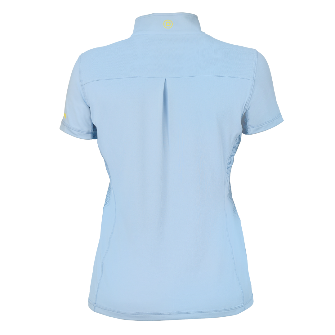 Featuring Comfort Dry Technology that will perform for you no matter what the weather providing moisture control for all day comfort. Mesh side panels, under sleeves and back yoke. The peached outer works to shed dirt, hay and horse hair, to keep you looking smart. A stand up collar with half zip placket, in a semi fitted style to offer a comfortable fit.