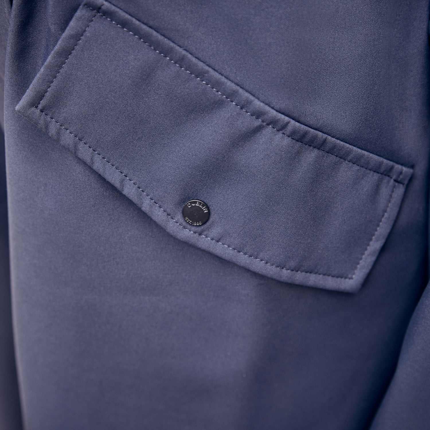 - Double ended zip and placket front closure with stylish enamel coated press studs and storm flap