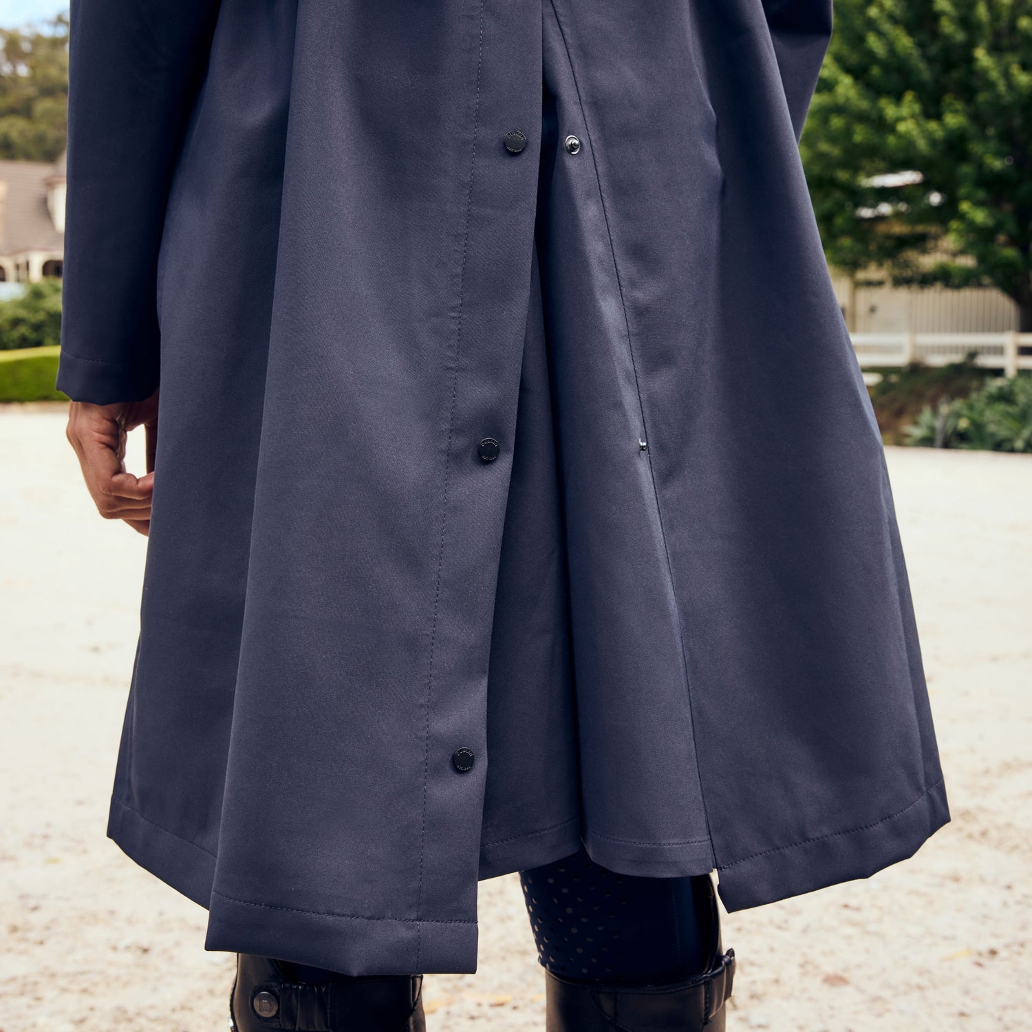 The Dublin Wet Weather Long Jacket is a waterproof and breathable jacket designed to keep you dry on wet weather days whether you are horse riding, teaching or simply supporting! This longline jacket with a contoured fit and elasticated waist offers style with functionality. The detachable peaked hood with pull and lock drawcord provides versatility whilst the side pockets with storm flap and snap closure ensure you have somewhere safe for your belongings. Made from a triple layer fabric with a TPU and jersey lining paired with the front storm flap ensures this jacket is highly waterproof and breathable to keep you protected from the elements. A double ended zip front closure, and rear gusset with snap closures ensures comfort when horse riding.