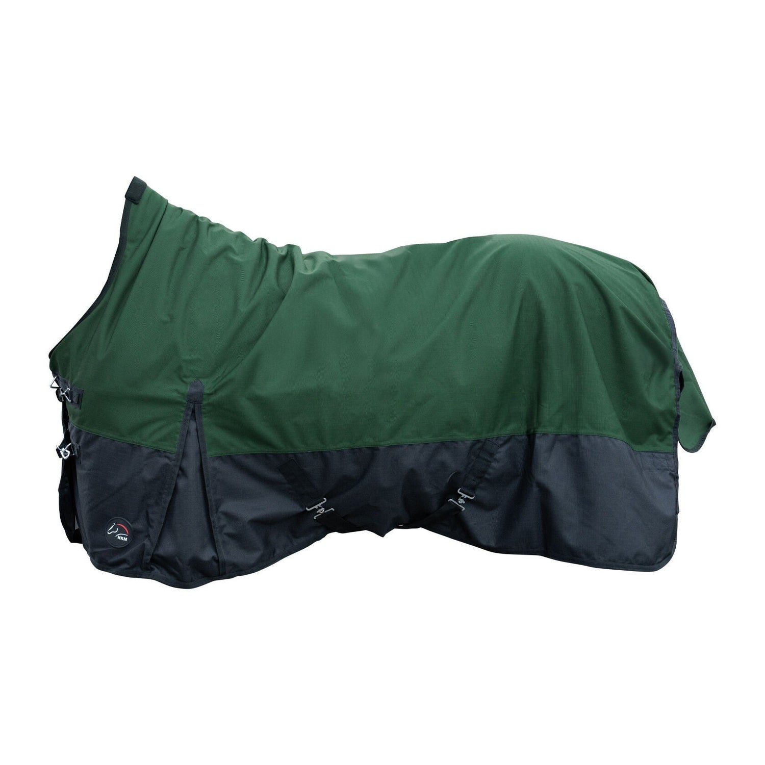 Keep your horse warm, dry and comfortable with the HKM 1200D Fleece Lined Highneck Rug. Featuring a waterproof, windproof and rip-proof design, this rug also boasts a warm and soft fleece lining. The adjustable front closures, cross-straps and tail strap ensure a secure and comfortable fit. Comes with a convenient storage bag.