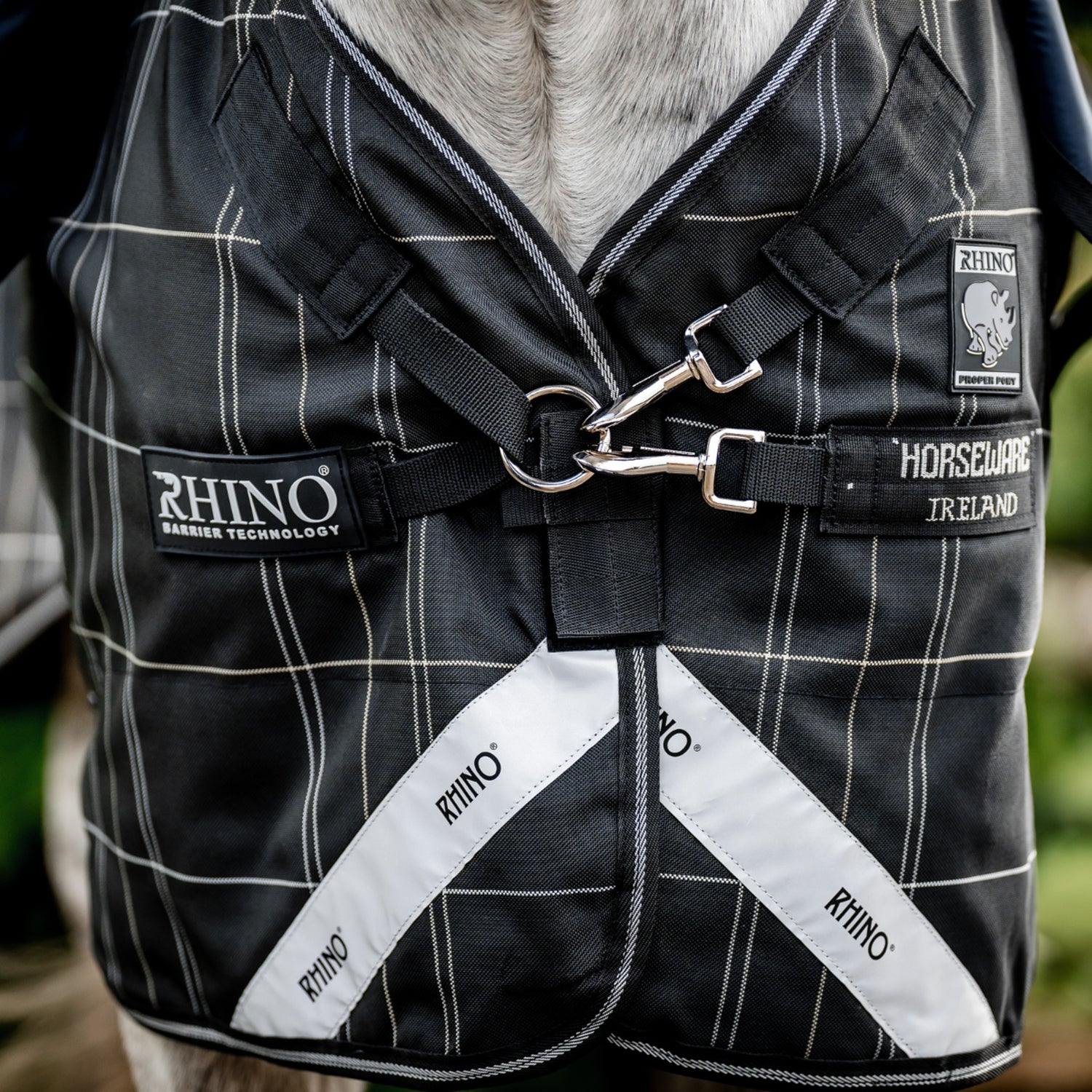 This exclusive Rhino® bundle features a Surefit Neck design with Horseware Ireland's V-Front Closure, which eliminates pressure on the shoulder, while the dual leg arches offer greater freedom of movement so that your horse can graze and play in the field in total comfort. A shine enhancing lining helps to keep your horse's skin and coat happy and healthy. Three crossed surcingles offer a secure fit, and reflective strips provide additional visibility. The tail strap is a handy feature you'll also love.