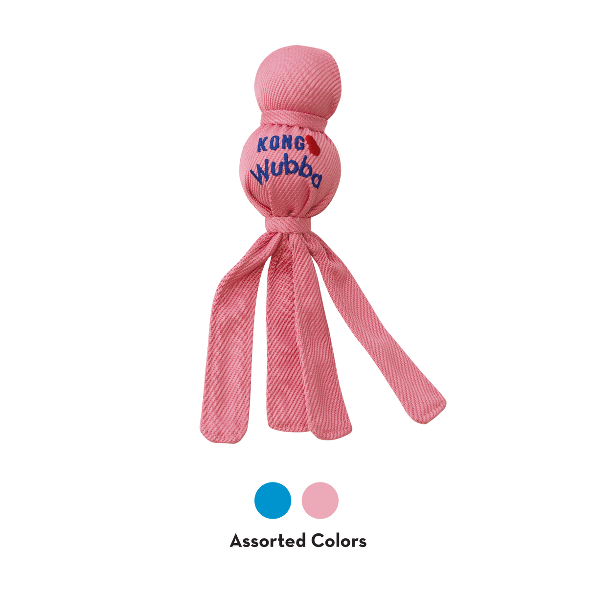 The KONG Wubba™ is a fun, interactive tug and toss toy that is great for interactive or solo play. It’s long floppy tails are ideal for shaking and tugging instincts as well as games of fetch. A durable reinforced nylon exterior comibines with unique ball shapes for play sessions that last longer. Dogs love to squeak the Wubba™ and add to the fun by shaking the flapping tails back and forth making every game different from the next.