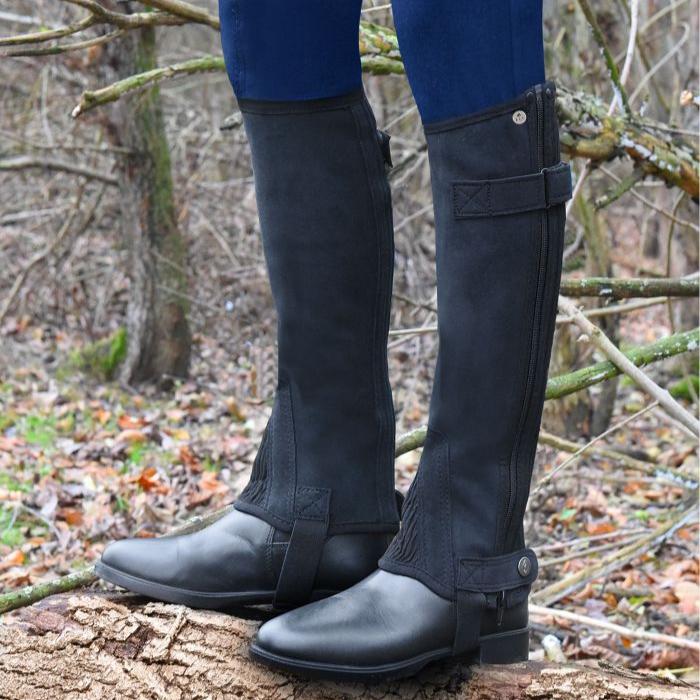 These elastic mini chaps offer a perfect combination of comfort and functionality for young riders. Designed with elastic inserts and reinforced stirrups, they ensure a secure fit and ease of movement. The zip with a press stud fastener at the bottom provides added convenience.