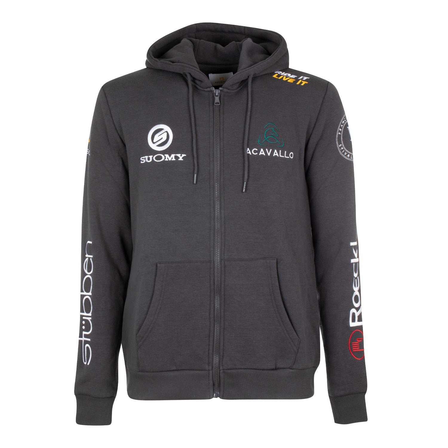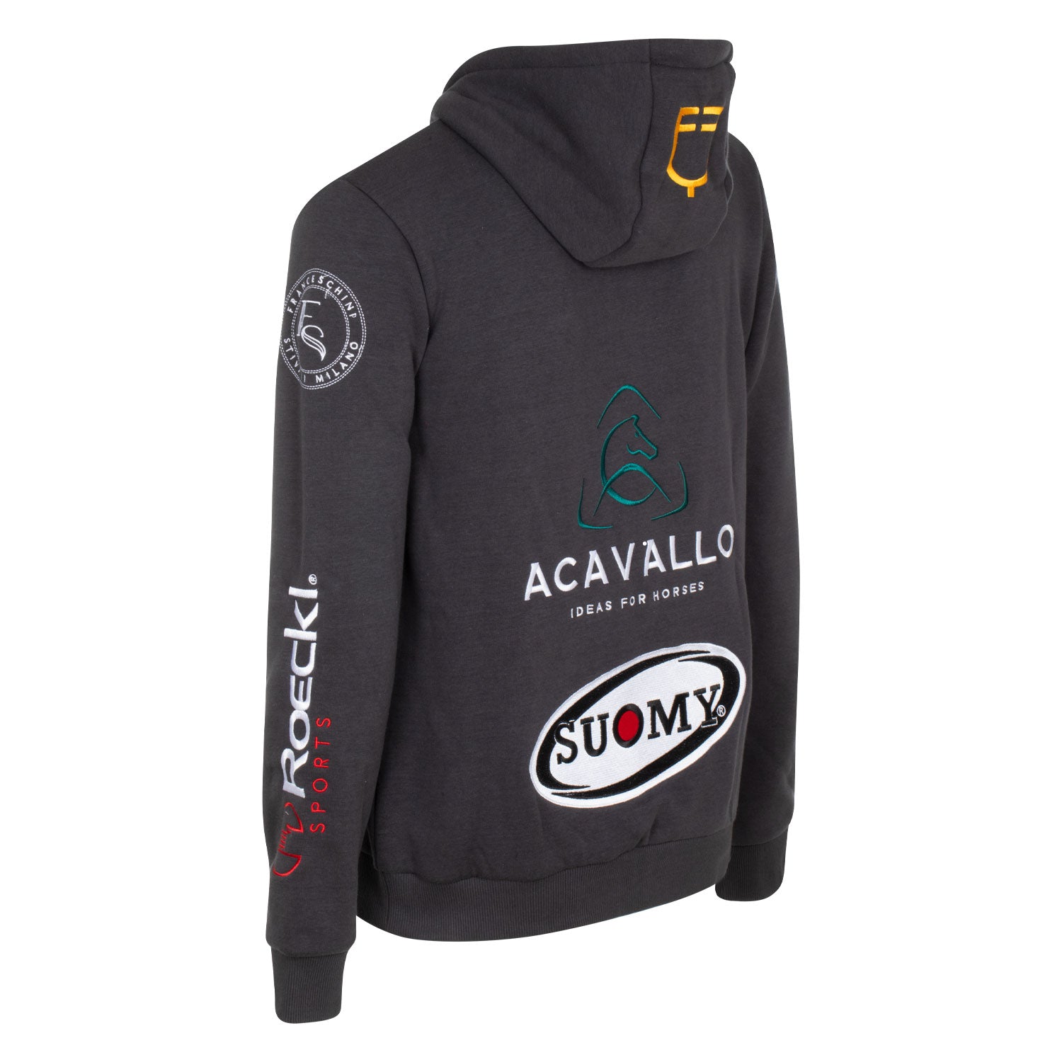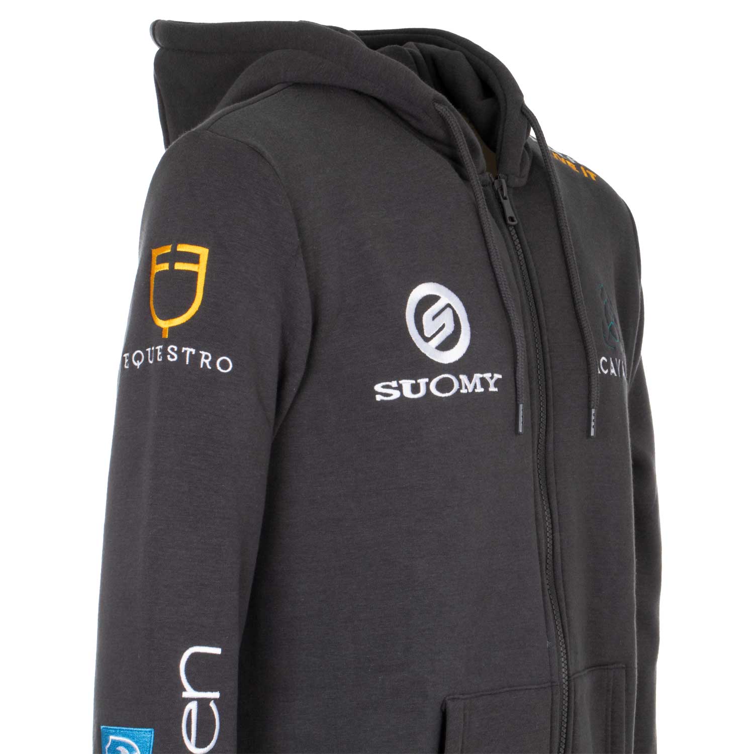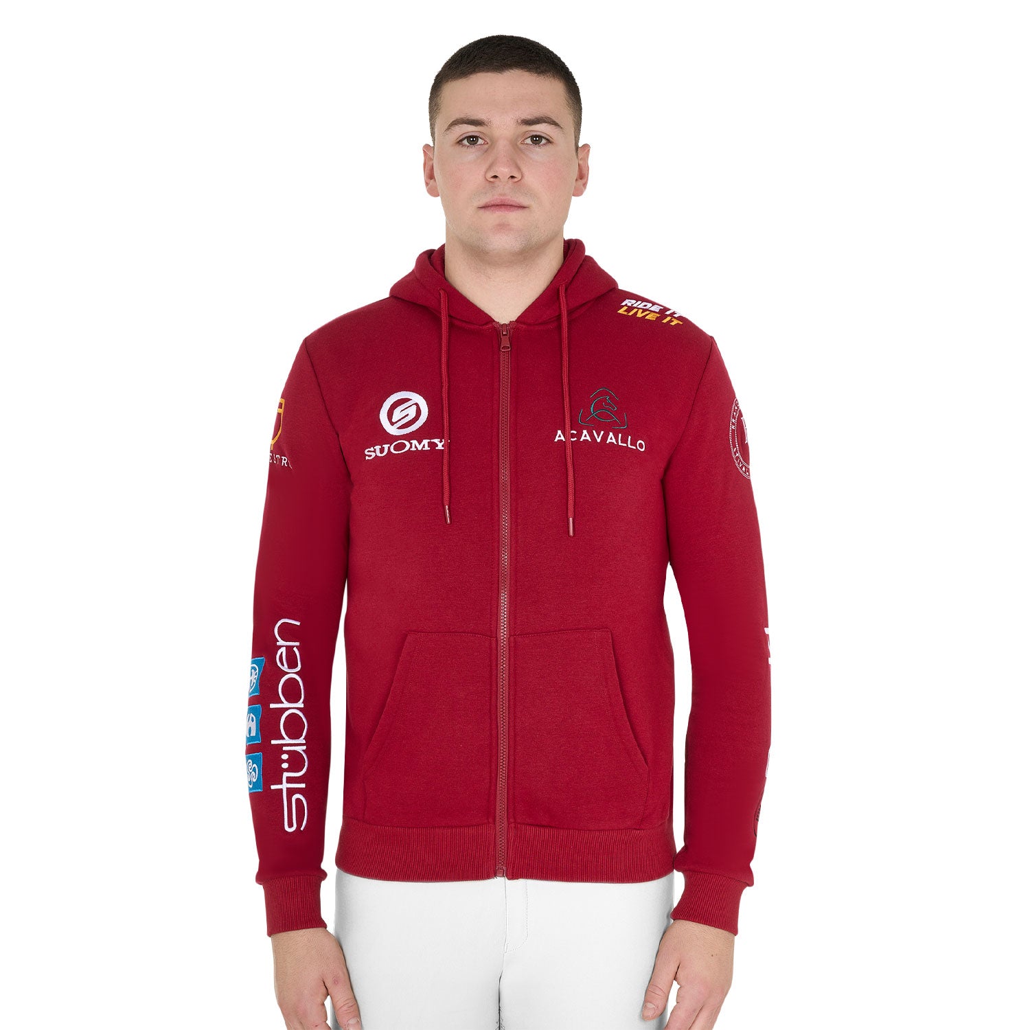 Stay comfortable and stylish with the Equestro Men's Hoodie, featuring iconic equestrian brand patches that celebrate your passion. Crafted from soft fleece cotton, it offers a cozy feel and a perfect fit thanks to ribbed cuffs and waistband. The full front zip and adjustable drawstrings provide versatility and temperature control, while side pockets add practical storage. This hoodie combines modern design with equestrian heritage, making it an essential addition to your wardrobe.