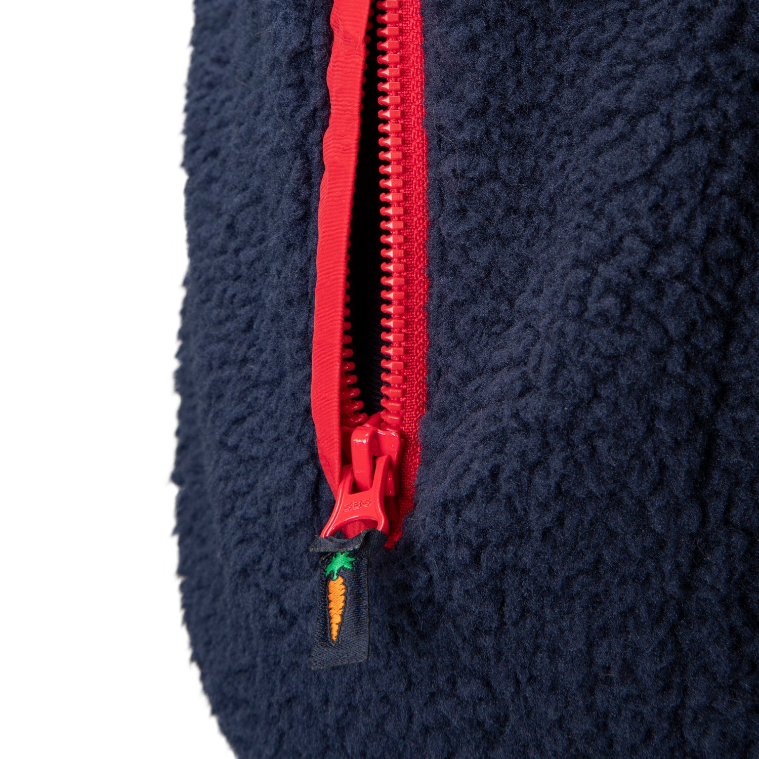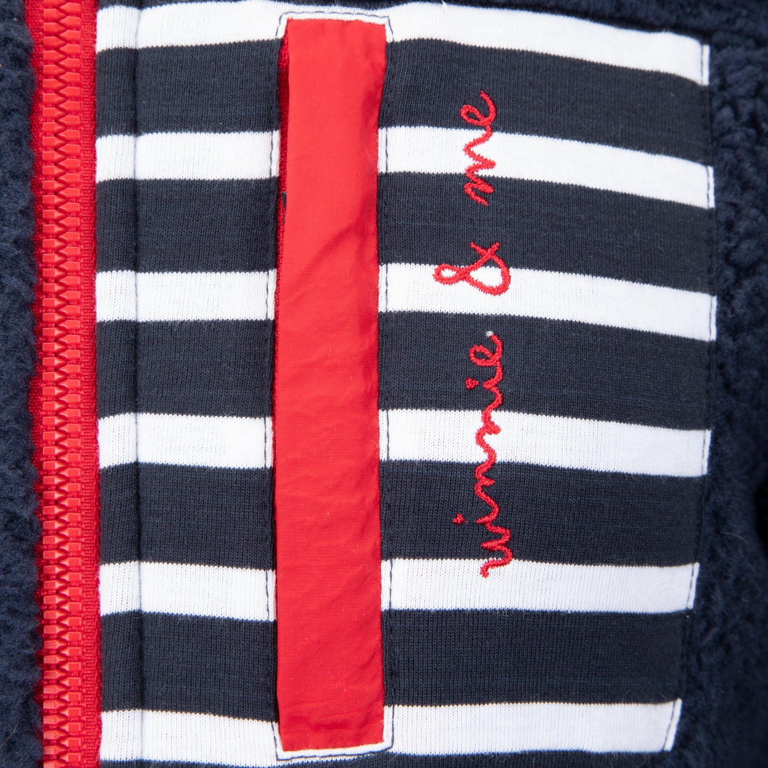 Soft and snuggly teddy fleece jacket with bound stretch hems and three zip pockets for small toys and treats. Featuring a Signature Winnie badge on the sleeve and a stripy patch on the front. Designed in deep pile cotton/fleece mix for cosy warmth with a roomy fit for layering.