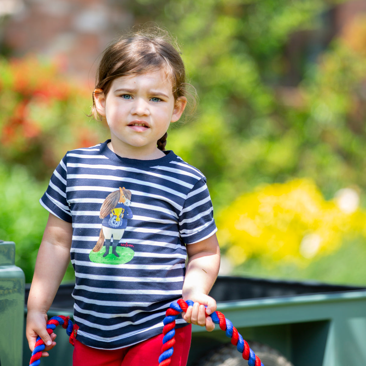 A crew neck t-shirt with turned up short sleeves and a relaxed fit. Featuring Show Pony Winnie who has won a trophy for best effort! Designed in 100% cotton for breathable comfort.