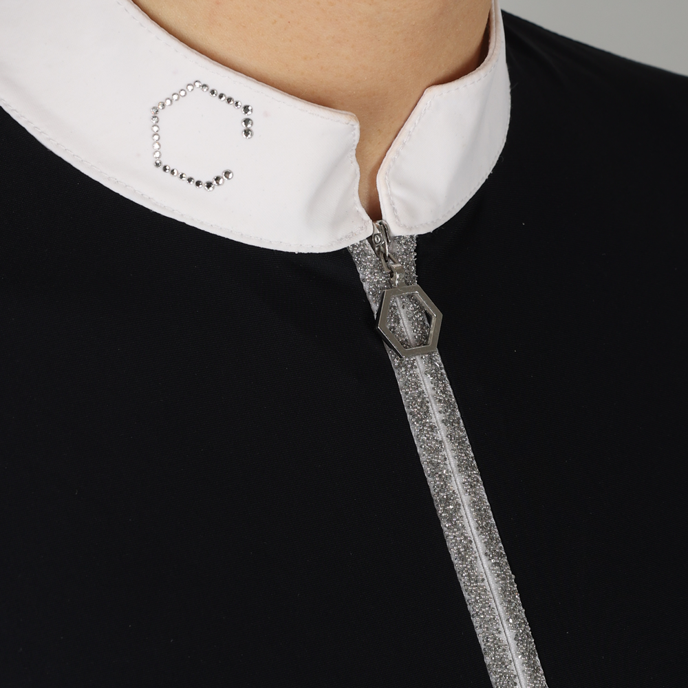 The Elrick Show Shirt is curated to ensure optimal elegance in the ring. Using an array of individual silver crystals to create the iconic Coldstream logo on the angled white collar. The moisture wicking textile is made from recycled plastic bottles and offers 50+ UV protection from the sun’s powerful rays.