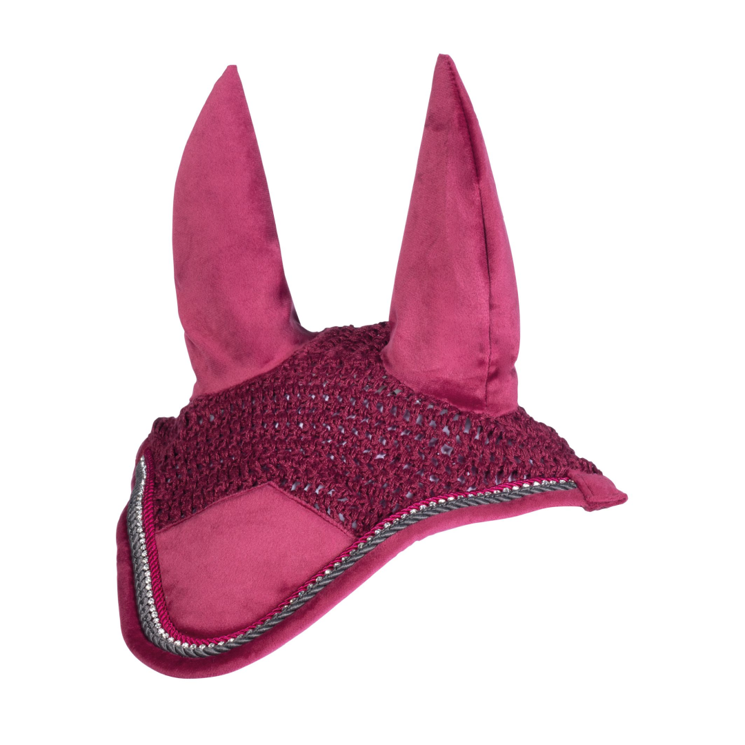 The HKM Ear Bonnet in Berry color is a must-have for horse owners who want to protect their horses from flies and insects. The bonnet is made of 100% polyester and is machine washable at 30 degrees, making it easy to clean and maintain. The velvety look and the details made of knitwear, cords, and rhinestones make it a real design highlight.
