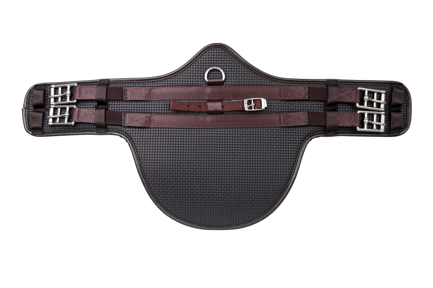 Anatomically shaped stud guard to help promote freedom of movement particularly over fences. Super strong yet soft material textured to allow airflow. Shaped for extra comfort. Broad belly pad with a martingale attachment and ring. Moves comfortably without chaffing or rubbing. Elasticated at both ends with Stainless Steel roller buckles. Easy to wipe clean.