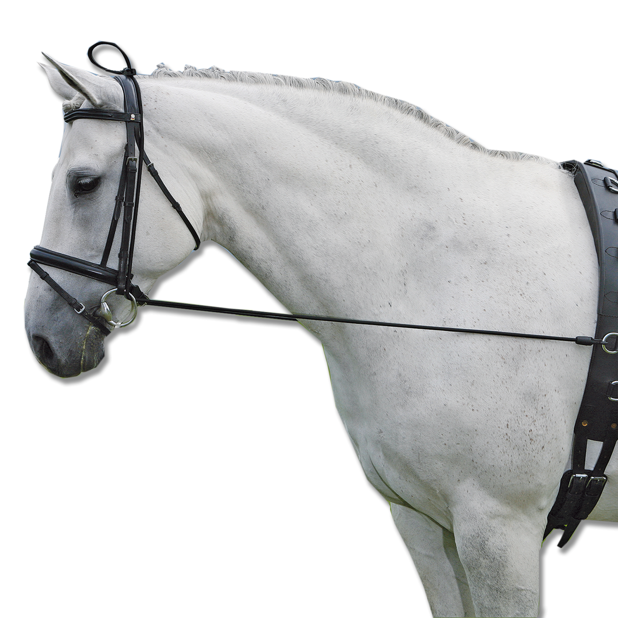 A perfect training aid for horses that stiffen their neck and resist the rider's hand. Especially useful for schooling young horses. Also suitable for lunging work. Fully elastic and infinitely adjustable.
