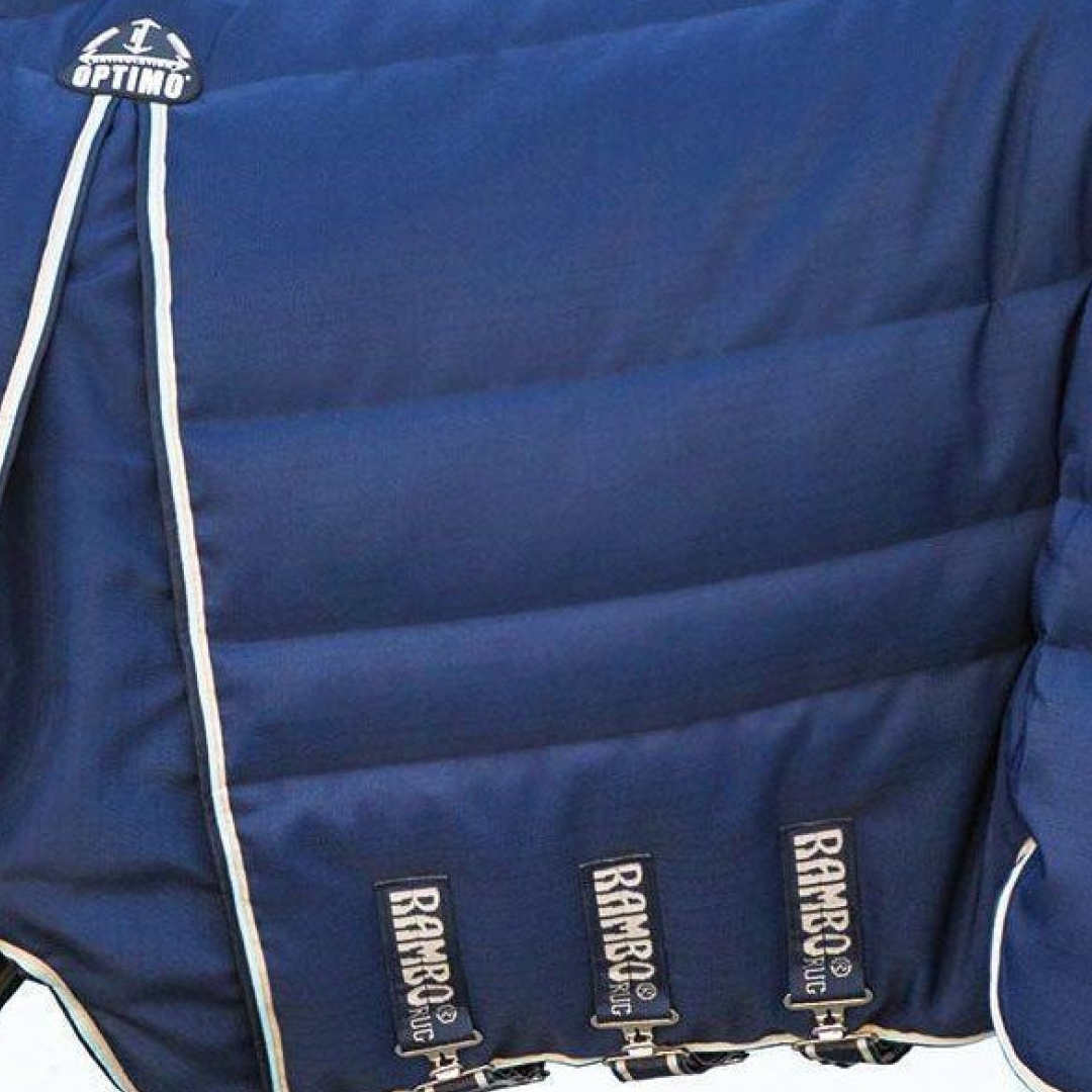 Horseware Ireland Rambo Optimo Stalldecke, schwer, 400 g - Navy/Thunderstorm Grey/Silver / 5'6 ist auf Lager und wird versandt, sobald es wieder verfügbar ist