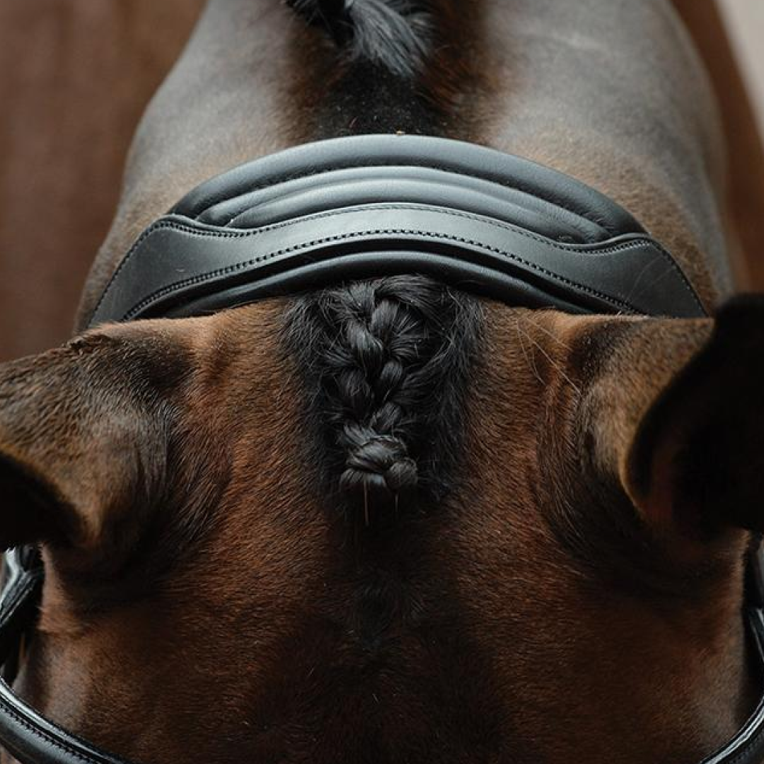 Hergestellt aus hochwertigem europäischem Leder. Dieses anatomische Genickstück verfügt über eine durchgehend superweiche Polsterung und ist zwischen den Ohren des Pferdes breiter geformt, um den Druck gleichmäßig und bequem zu verteilen. Außerdem verfügt es über ein gebogenes Nasenstück, das alle empfindlichen Hauptgesichtsnerven umgeht und ultimativen Komfort und Schutz bietet.