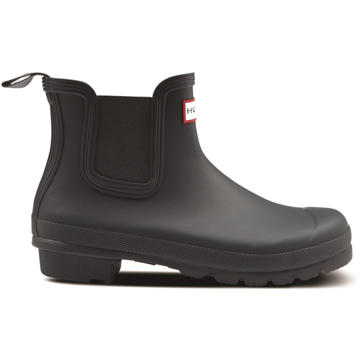 Der neue und verbesserte Hunter Original Chelsea Boot hat eine noch optimalere Passform für maximalen Komfort den ganzen Tag. Jeder Stiefel ist für den Regen gerüstet und aus Naturkautschuk handgefertigt und für hervorragenden Schutz vulkanisiert. Er behält die ikonischen Merkmale eines traditionellen Chelsea-Stiefels bei und verfügt über elastische Zwickel und eine Nylon-Zuglasche, um das Anziehen in den Stiefel zu erleichtern. Diese wasserdichten Chelsea-Schuhe in klassischem Mattschwarz sind ein unverzichtbares Kleidungsstück für nasses Wetter.