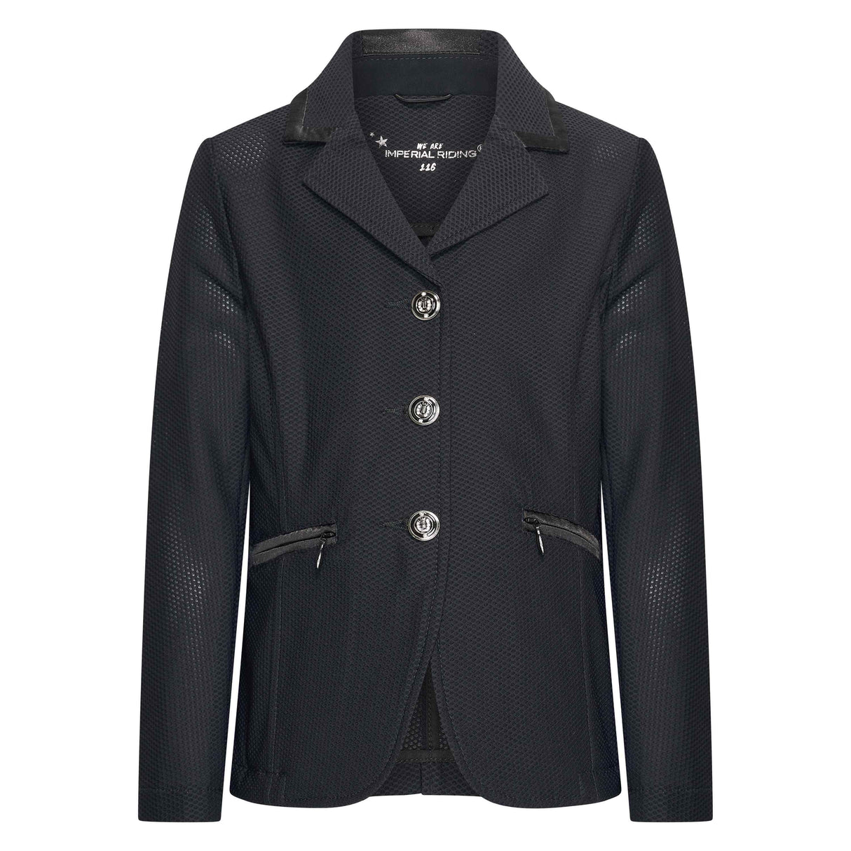 Expertly designed for young equestrians, the Imperial Riding Air Meshy Children's Competition Jacket offers maximum comfort and breathability with its ultra light and 4-way stretch fabric. The front and back mesh fabric, along with the sleeve, collar, and lapel mesh fabric, add a touch of style while keeping your child cool and comfortable during competitions. Complete with crystal Rhinestone buttons and unlined for a lightweight feel.