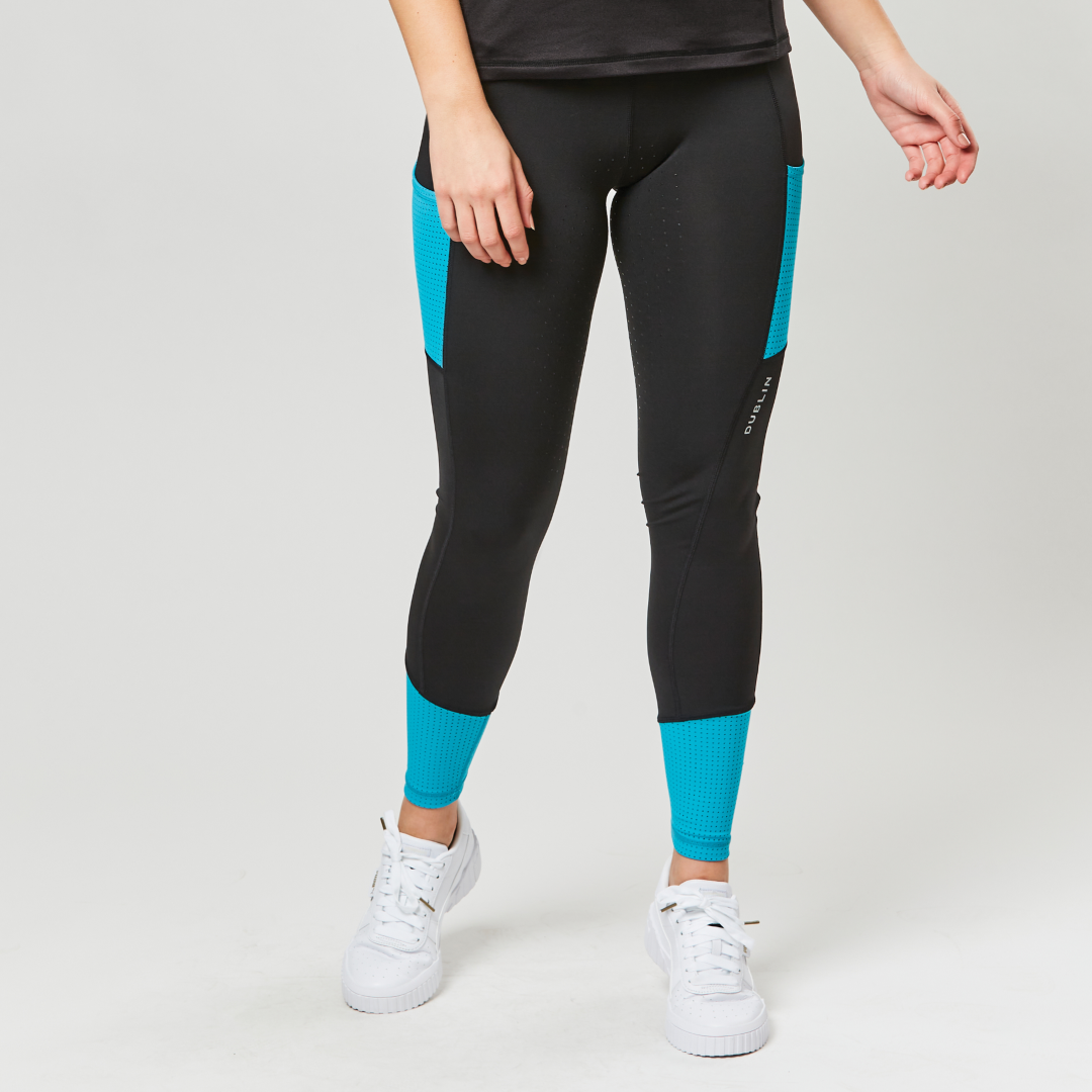 Die Dublin Power Performance Mid Rise Color Block Damenstrumpfhose ist athletisch gestaltet mit Stretch-Polyestergewebe und technischen Merkmalen, zu denen die Comfort Dry-Technologie gehört. Die modernen Farbblockeinsätze sorgen für einen sportlichen Look, mit praktischen seitlichen Handytaschen und Bündchen aus Laser-Mesh, einem perforierten Stoff. Ausgestattet mit Reißverschlusstaschen auf der Rückseite zum Verstauen Ihrer wichtigsten Utensilien und einem nahtlosen Ezi-Grip-Gel-Vollgriffsitz mit Silikondruck für Stabilität.