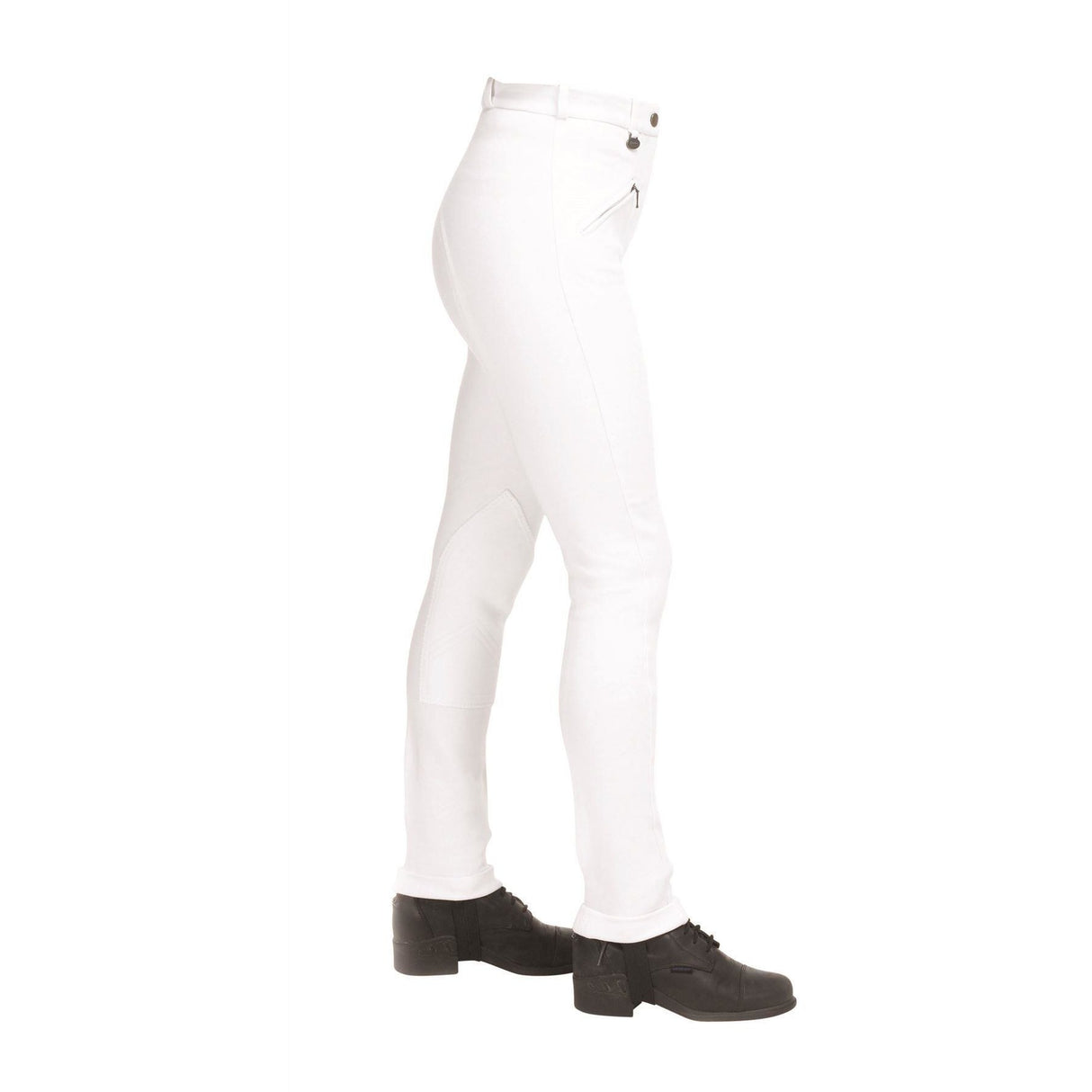 Diese klassisch geschnittene Damen-Jodhpurhose ist bequem, praktisch und im traditionellen Stil. Hochwertiges Material aus 94 % Baumwolle und 6 % Elastan für tollen 4-Wege-Stretch und Komfort. Mit diskreter Reißverschlusstasche vorne, durchgehendem Reißverschluss, verstärkten Nähten mit Hosenschlitzgürtelschlaufen und elastischem Stiefelriemen an den Knöcheln (abnehmbar) mit aufgerolltem Saum.