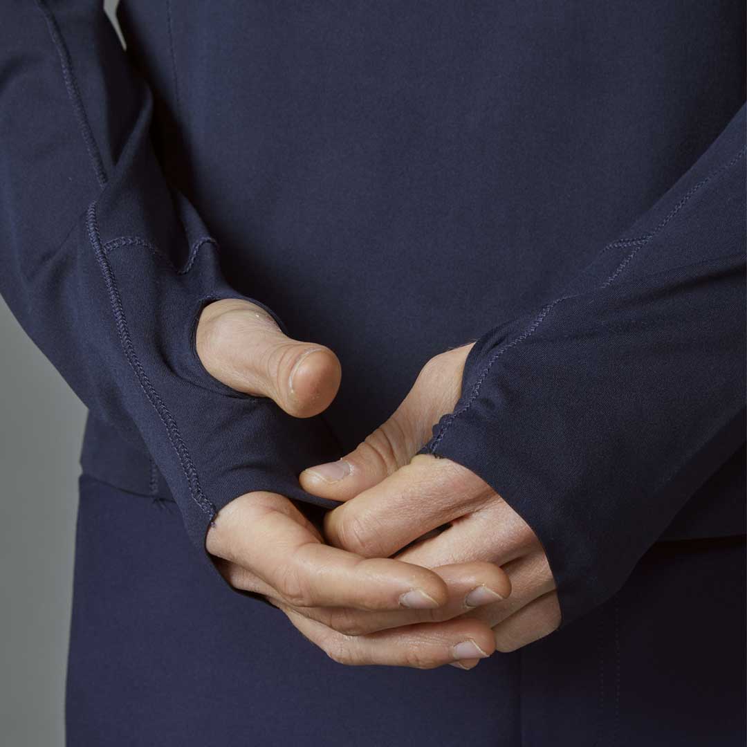 The Men’s Reflector has a practical zip neck and is made from a technical stretch fabric with mesh panels for extra breathability. Reflective prints aid visibility and contemporary features include fusible hems and discreet thumbholes at the cuffs.