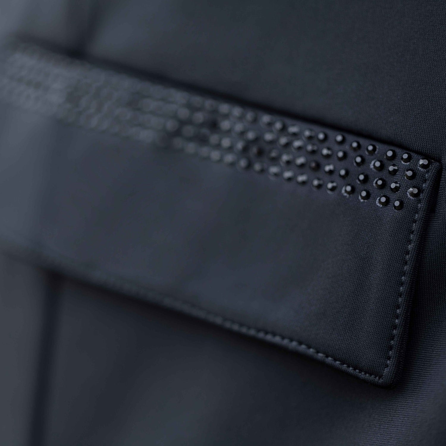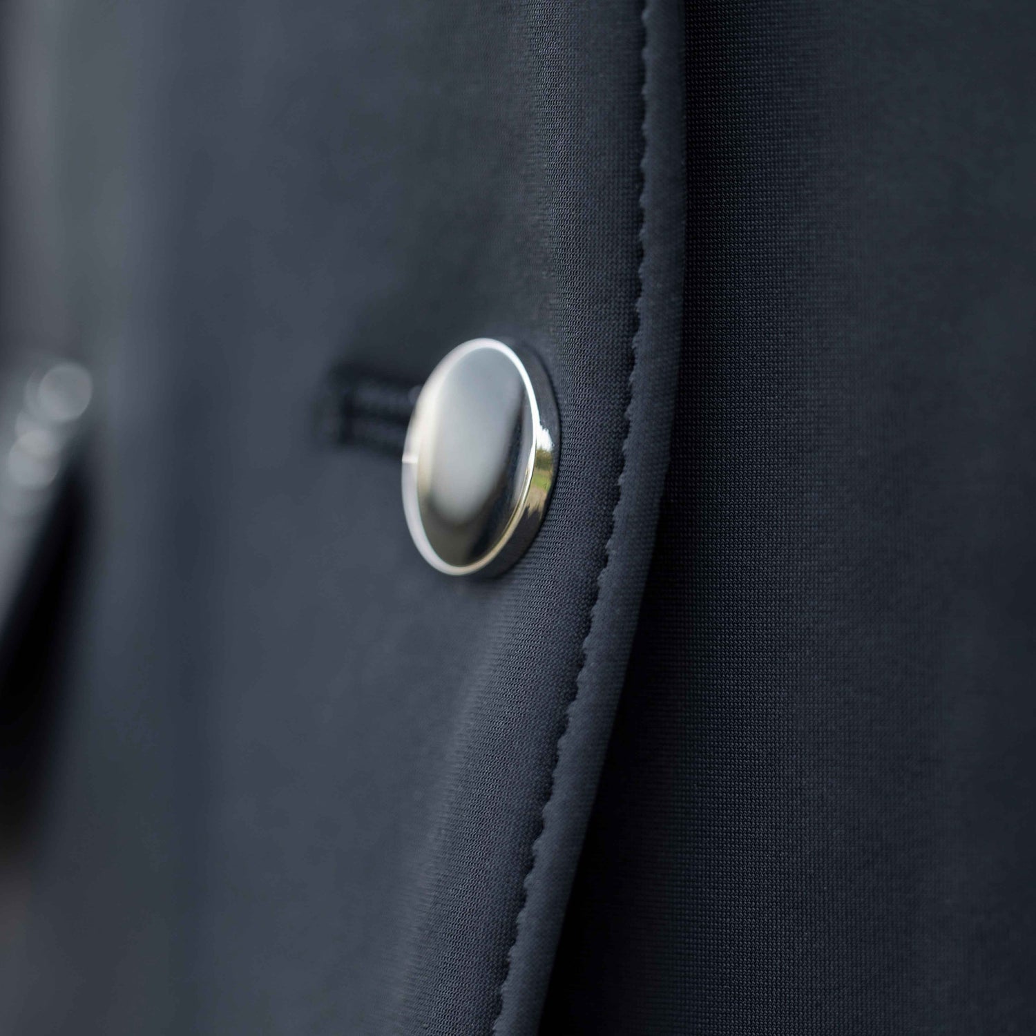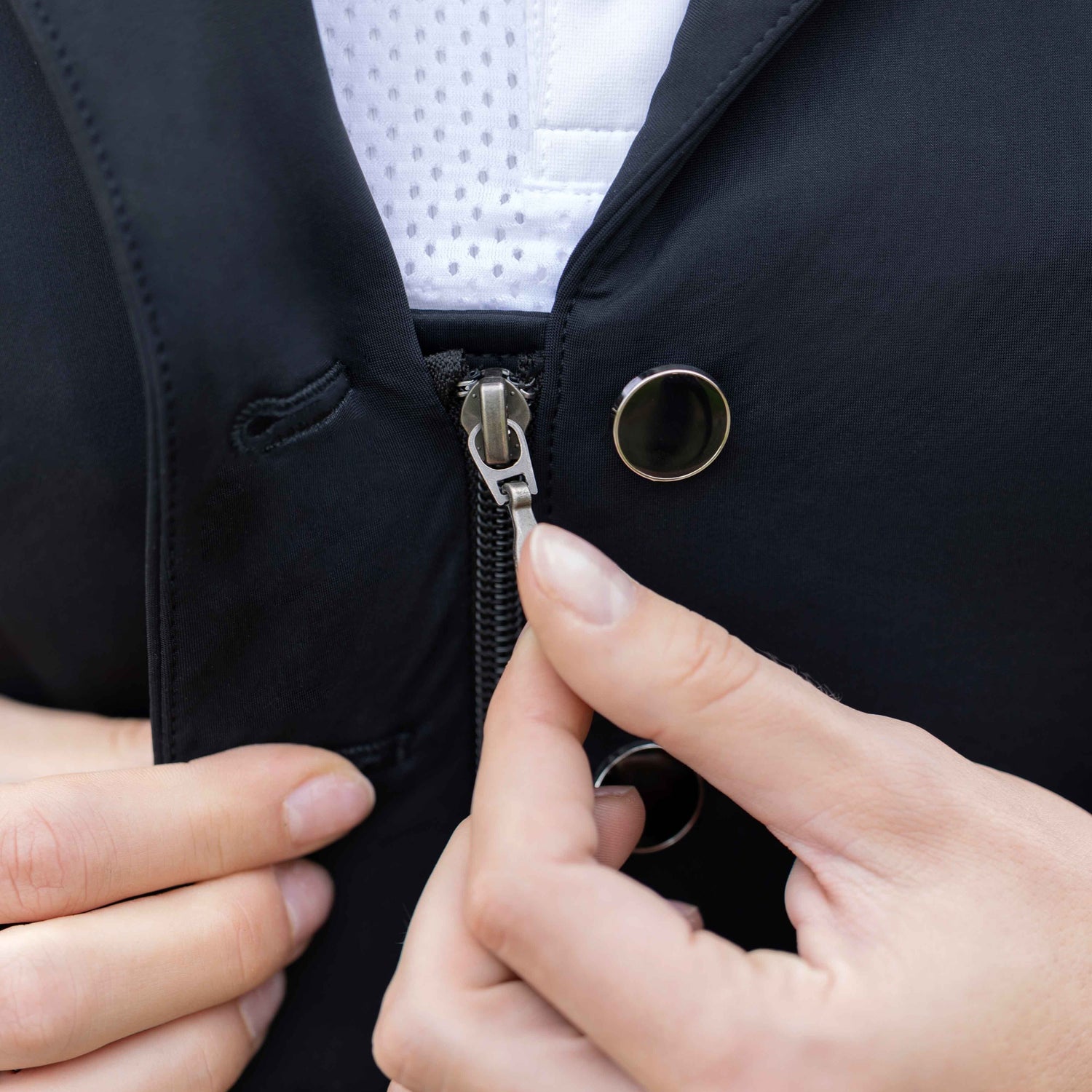 The HKM Children's Competition Jacket combines elegance and function. Made with crease-resistant material and a dirt-repellent surface, it always looks flawless and is easy to care for. Its rhinestone accents and hidden zipper add style, while riding slits and practical pockets provide comfort and freedom of movement.