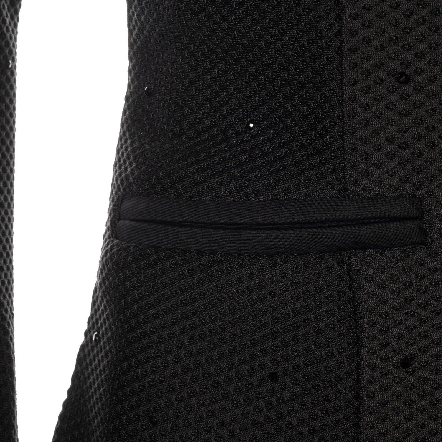 - Hidden zipper behind button bar