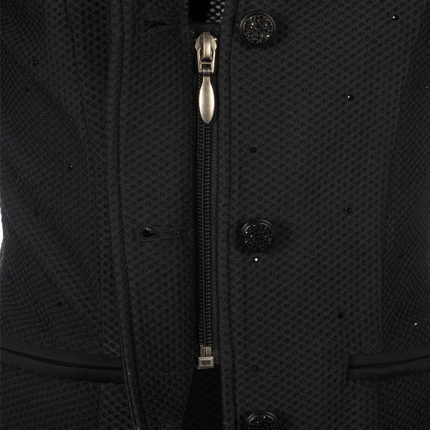 The HKM Children's Competition Jacket Crystal Kids offers young equestrians an elegant and functional option for competitions. Its lightweight mesh material allows for breathability and comfort in warmer weather, while the tailored cut and integrated riding slits provide freedom of movement. Elegant details like the concealed zip and rhinestone trim add a touch of sophistication. Plus, the crease-resistant and elasticated material ensures a perfect fit for every rider.