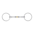 The double jointed mouthpiece distributes the pressure evenly over the tongue and bars, while the soft roll made of sweet copper in the centrepiece stimulates the mouth. The loose rings ensure that the bit always finds a neutral position in the horse's mouth.