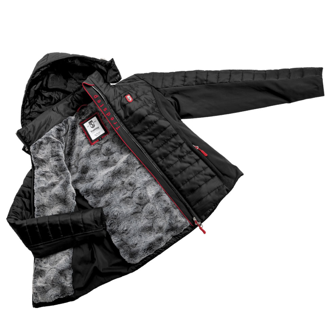 Mit Primaloft-Gold isoliert und mit luxuriösem Kunstpelz gefüttert. Stretcheinsätze an den Seiten. Schmeichelnde, feminine anatomische Form. Seitentaschen mit Nahtreißverschluss, 2-Wege-Frontreißverschluss. Stilvolles kontrastierendes Branding und Details. Vollständig atmungsaktiv und maschinenwaschbar