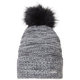 The Mountain Horse Silver Star Hat features a soft knit with an irregular textured surface and silver lurex thread throughout. Its bottom edge is lined with a cosy fleece and topped with a black faux fur pompom. This one size fits all hat also boasts a fancy Mountain Horse logo badge at the front.
