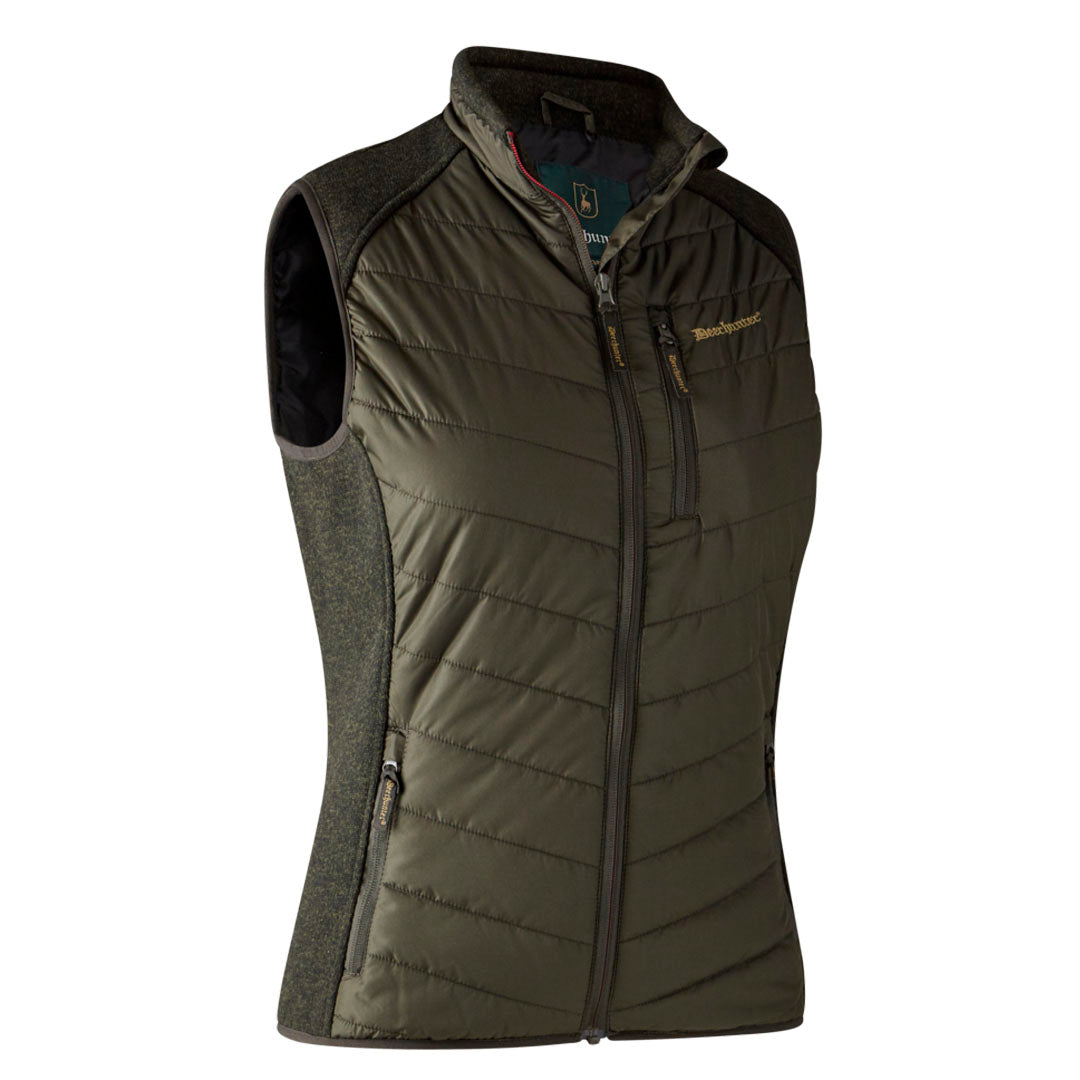 Die gepolsterte Damenweste Caroline von Deerhunter ist praktisch, warm und wunderschön gestaltet, was sie zu einer perfekten, vielseitigen Ergänzung Ihrer Herbst- und Wintergarderobe macht.