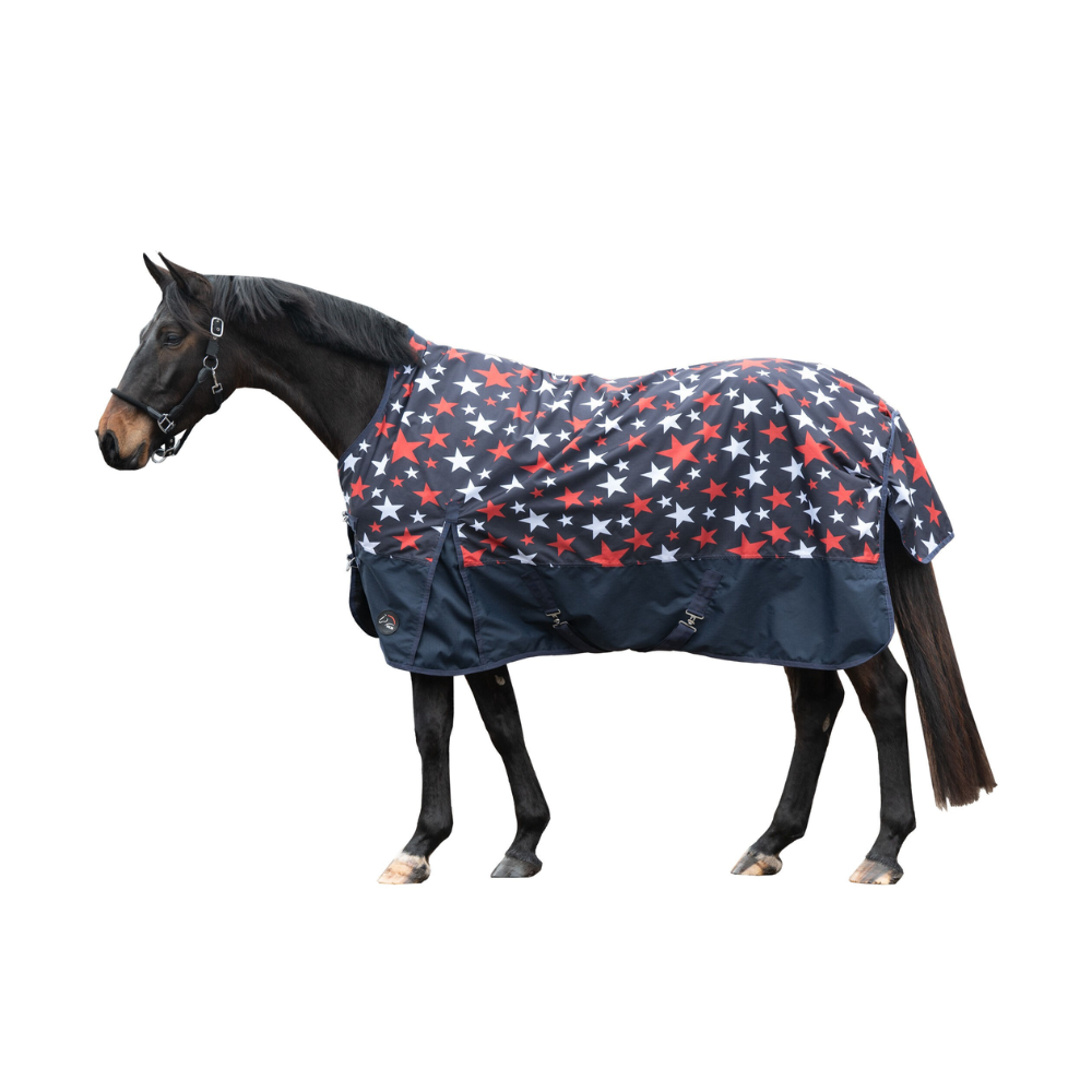 The HKM 600D 300g Highneck Rug -Norwich- is a durable and functional choice for your horse. With its waterproof, windproof, and breathable design, it offers superior protection and comfort. The 300g cotton filling provides warmth and the smooth, rip-proof fabric is easy to clean. Plus, the rug comes with adjustable front closures, a tail strap and guard, and a convenient bag.