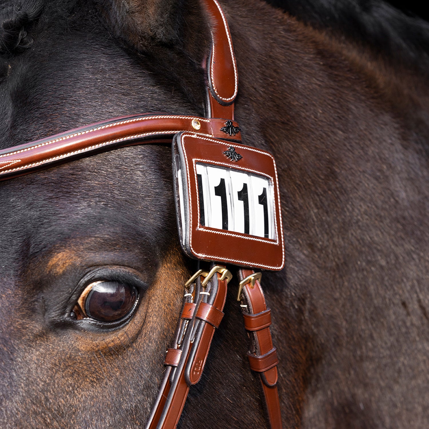 Get competition-ready with our Set of 2 Leather Competition Numbers! Made from 100% leather, these numbers feature four digits and can be easily fastened in three ways. Choose to attach them to your saddlepad, headcollar, or bridle for convenience. The white décor stitching and HV Polo metal logo add a touch of elegance to your competition look. Order now and stand out in style!