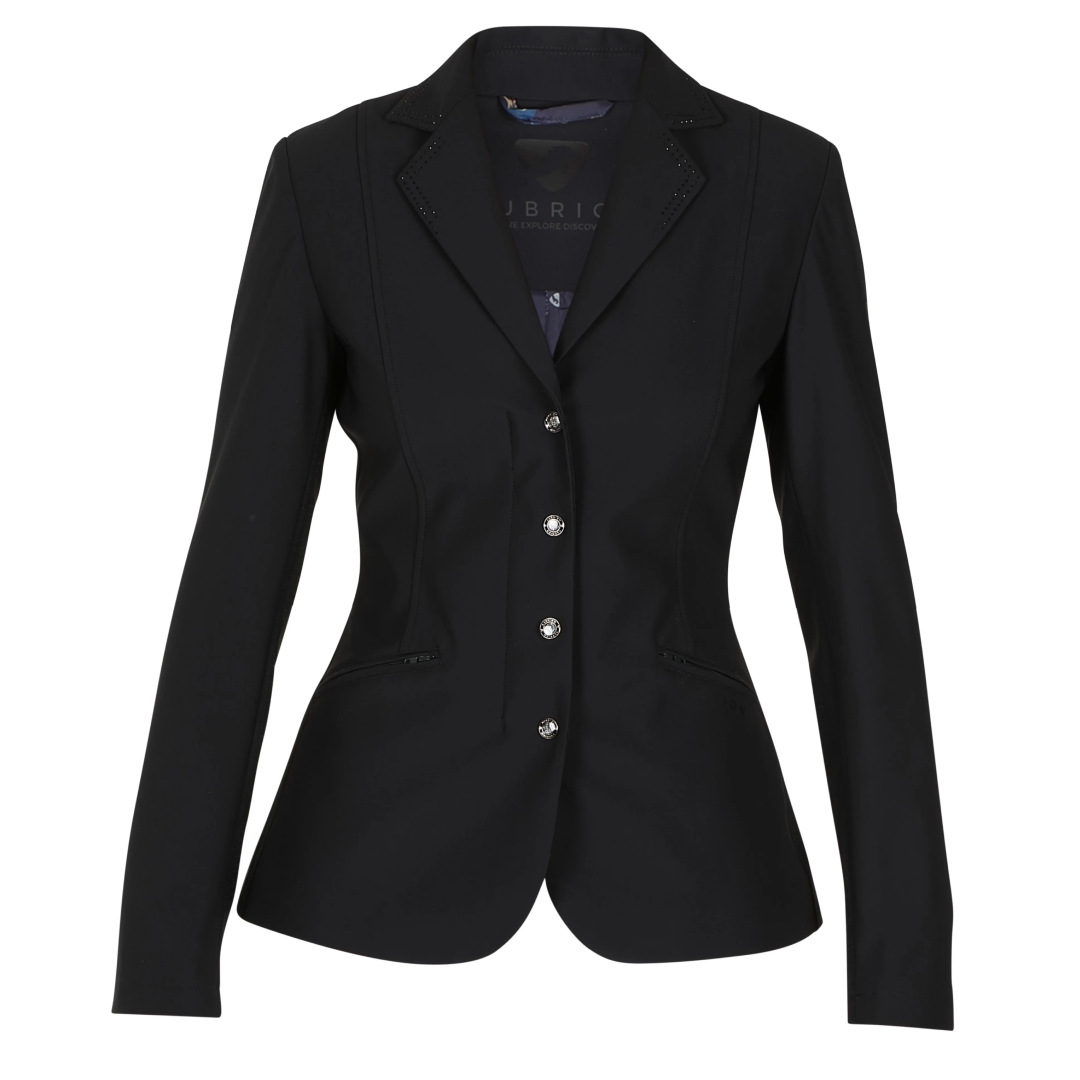 Die Shires Aubrion Children's Wellington Show Jacket zieht alle Blicke auf sich und hat einen schlanken, konturaktiven Schnitt, der vielen Reitern gefallen wird. Der Kragen ist mit zwei Reihen gleichfarbiger Strasssteine besetzt, vorne in der Mitte und an den Manschetten befinden sich kostenlose glitzernde Emaille-Knöpfe.