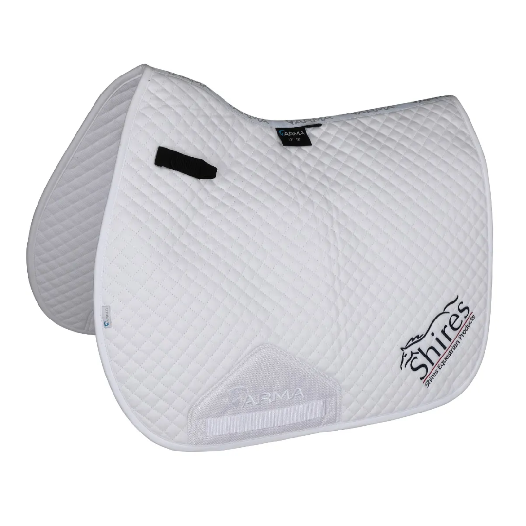 Die Shires Branded GP-Schabracke trägt ein elegantes Branding und wird vom #shiresprorider-Team verwendet. Atmungsaktives, atmungsaktives, pillinghemmendes Obermaterial aus 100 % Baumwolle. Das ULTRA DRI ZONE-Futter leitet den Schweiß sofort vom Pferd ab, um das Risiko von Reibung zu verringern und den Komfort zu erhöhen. Gurtführungen und elastische D-Ring-Riemen für bequeme Sicherheit. Strapazierfähige Gurtschoner.