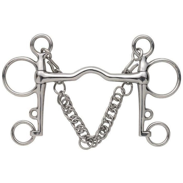 Die Öffnung in diesem Pelham schafft mehr Platz für die Zunge des Pferdes. Kann mit Doppelzügeln oder Pelham-Rundungen verwendet werden.