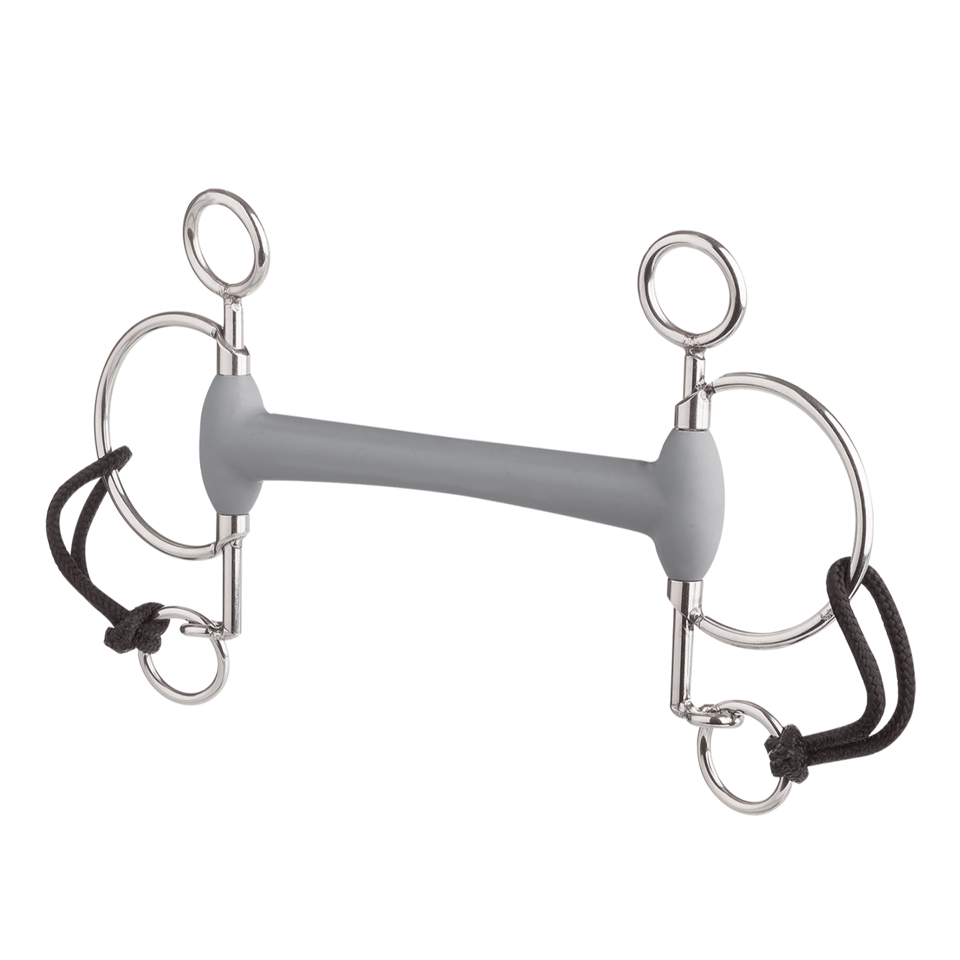 The eggbutt bar is a mouthpiece with universal use, it sits very quietly in the horse's mouth and the eggbutt sides effectively prevent lip pinching. The Pelham- a classic bit, now in our more elegant and enhanced design. When the reins are applied, the bit acts on the mouth, lower jaw and poll. Depending on lever length of the shanks (5 cm or 7.5 cm), a different strength and direct bit angulation in the mouth is achievable. Used on horses that have difficulties coming through at the poll, "hot" horses, or on horses that need significant input in critical situations (such as jump offs or similar). The Pelham is supplied with curb hooks.