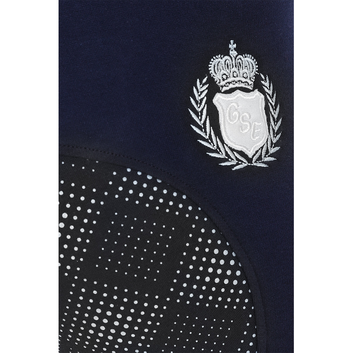 Les Carol Jodhpurs ont des poignées en silicone à siège intégral, positionnées stratégiquement de manière à augmenter la stabilité du cycliste en selle et à réduire le glissement. Les poignées en silicone sont d'une couleur contrastée qui correspond à l'emblème brodé et le silicone a été conçu pour apparaître comme un motif à carreaux. Situés à droite, à l'arrière, les Carol Jodhpurs arborent un emblème brodé GS Equestrian qui ajoute au design moderne. De plus, il y a une étiquette GS Equestrian sur le devant gauche, juste en dessous de l'un des passants de ceinture.