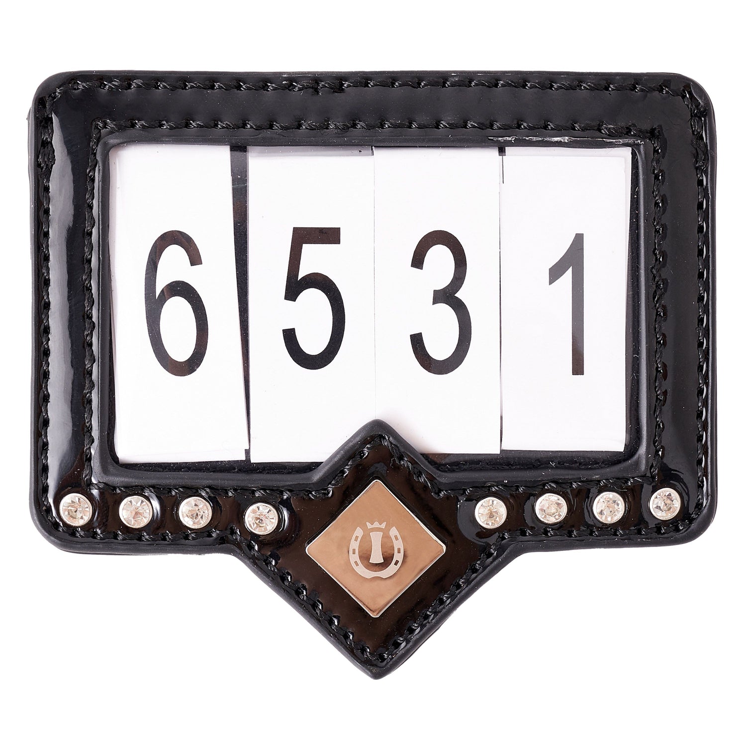 Elevate your competition look with the Imperial Riding Show and Glow Competition Number. Featuring a sleek croco finish and sparkling crystals, this competition number adds a touch of elegance to your attire. Easily attach it to your saddlepad with velcro, safety pin, or bridle with the snapbutton. Magnetic closure keeps it secure.