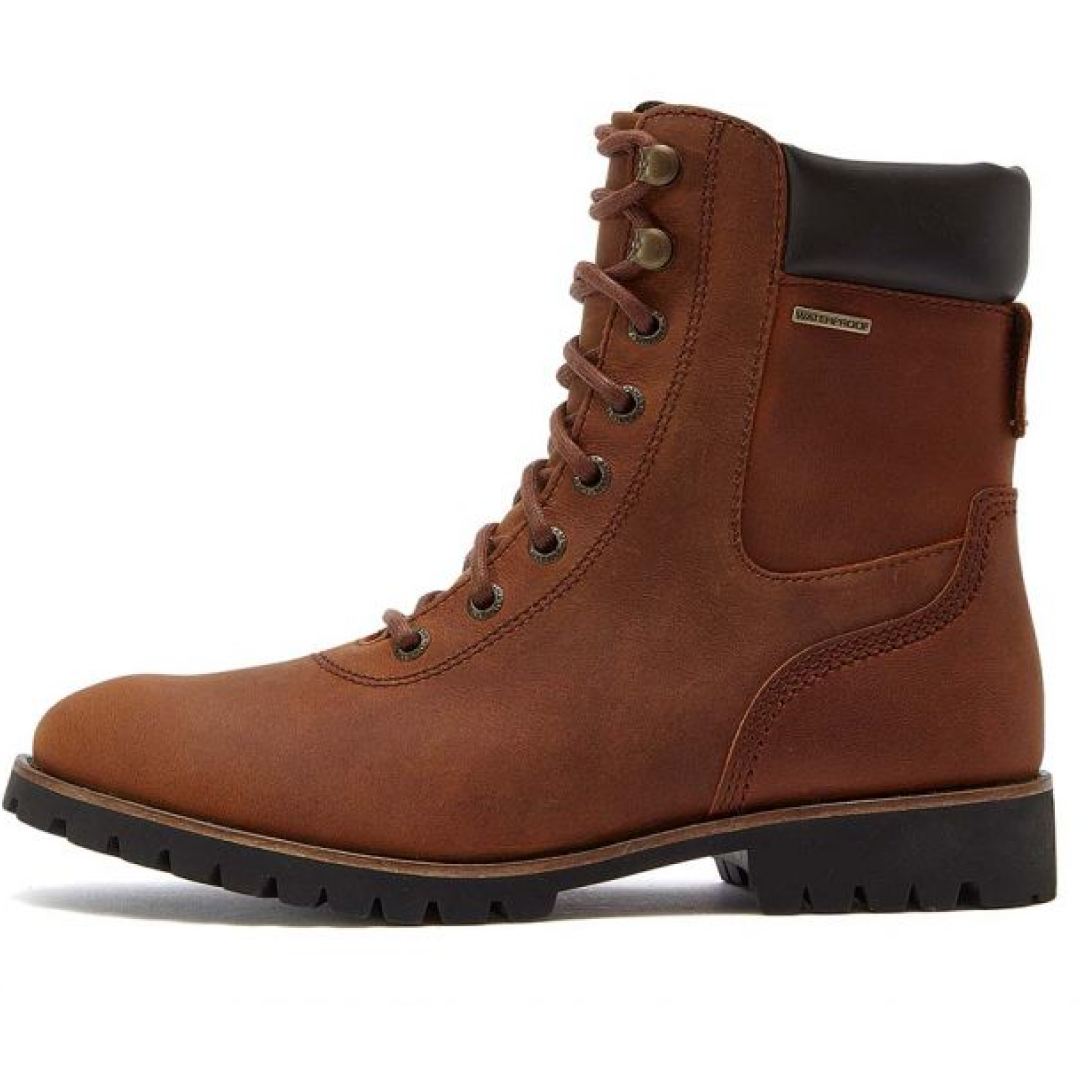 Fabriquées de manière experte à partir de cuir de qualité supérieure 100 % imperméable dans un ton noyer riche et saisonnier, ces bottes de marche pour femmes sont dotées d'un laçage à six œillets avec des crochets doubles en haut et d'un revers de cheville rembourré. Ils ont une doublure en microfibre respirante, un amorti performant à ressorts poron, qui est antibactérien et offre un maximum de confort et d'absorption des chocs, et ils reposent sur une semelle à crampons en caoutchouc durable.