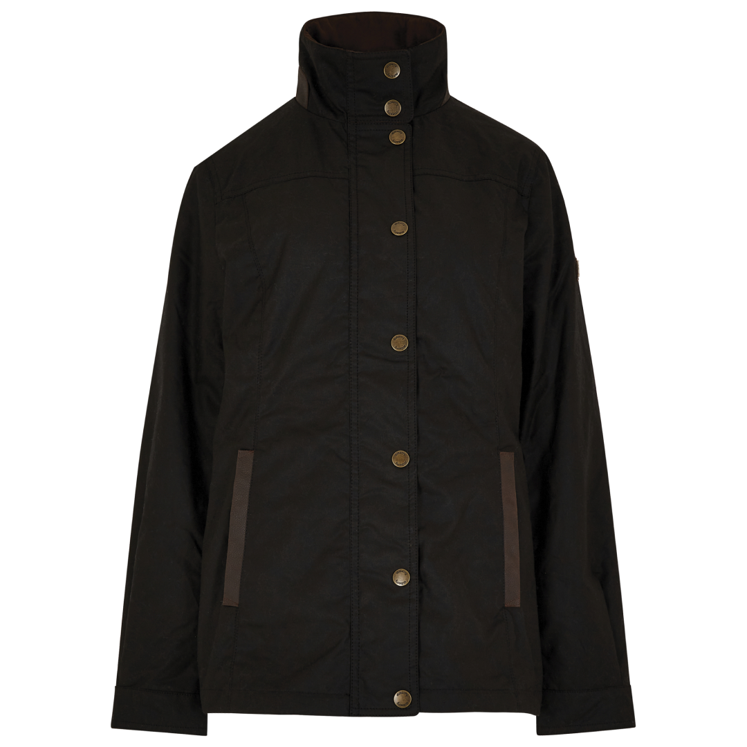 The waxed cotton Dubarry Mountrath is a warm winter jacket with PrimaLoft fill and water repellent finish - perfect for braving wet and windy days in. The leather trim and branded stud poppers lean into a traditional, elegant aesthetic while the stud-fastened faux suede collar and soft, flattering tailoring add a slick urban flair to this comfortable country style.