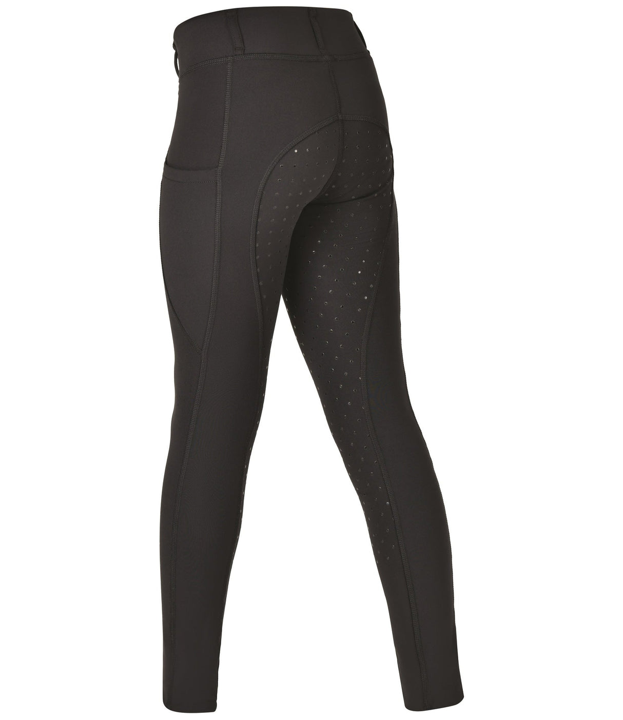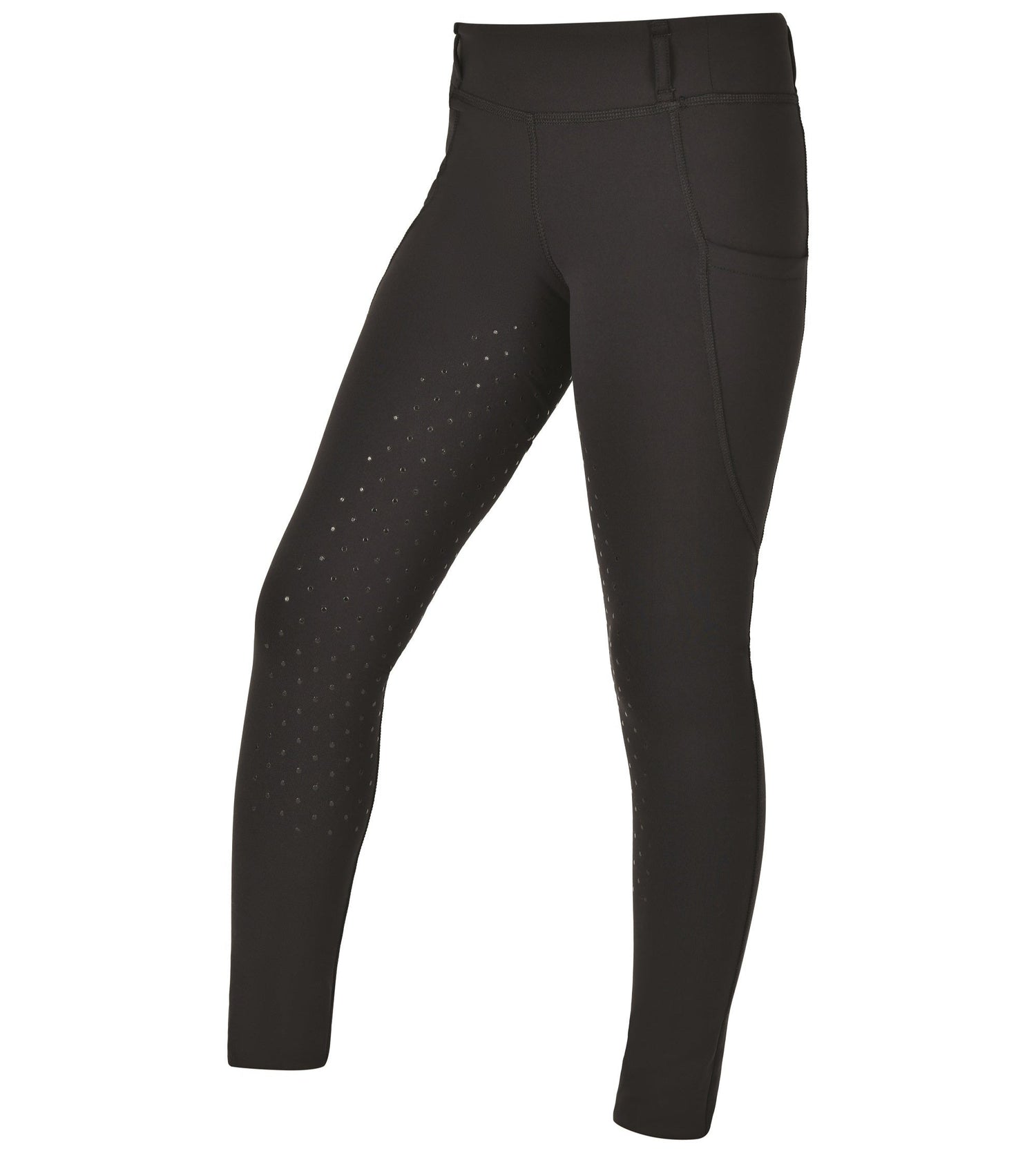 The Dublin Thermal Riding Tights are an ideal choice this winter to keep you warm whilst horse riding. These pull on style riding tights are made from a four way stretch thermal fabric with brushed back and Comfort Dry Technology is breathable and supports moisture control and designed for comfort and warmth during everyday activities. The mid rise wide waistband offers support for a flattering and comfortable fit featuring belt loops for the option of wearing with a belt! Featuring a pocket on each side with a gel grip ideal for phone storage whilst exercising, whilst the dot print full grip gel seat provides additional stability when in the saddle.