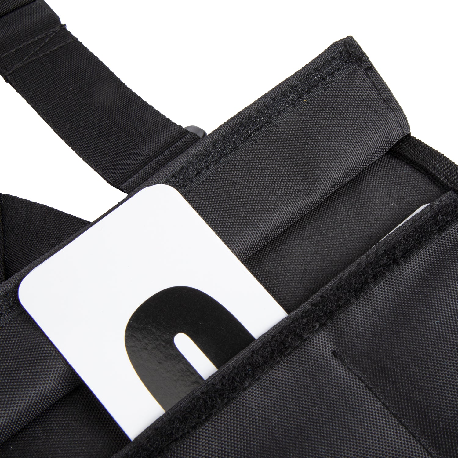 Robust number cards are inserted at the reverse of the display via touch close flaps. Adjustable shoulder straps allow a snug and secure fit. At the waist are elastic straps, one with a slider and a quick-release buckle for easy entry and securing. Aubrion prints to the front and back.