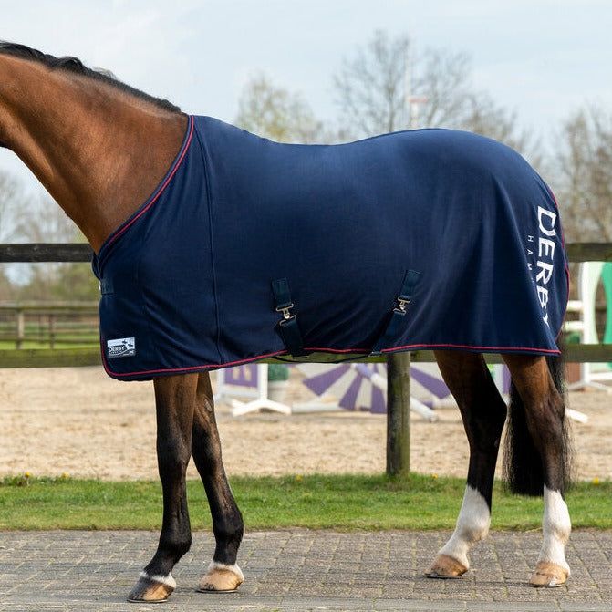Designed to effectively wick away moisture and sweat, the -Derby- cooler rug helps regulate your horse's body temperature, preventing them from overheating and ensuring rapid cooling post-exercise.
