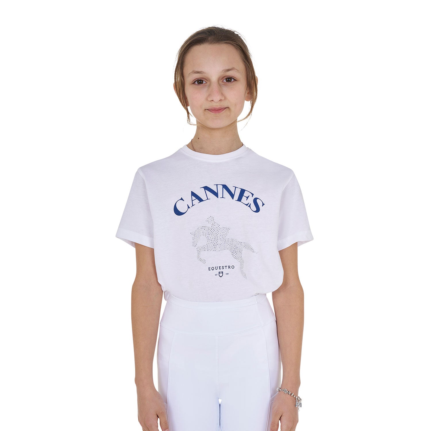 Equestro Girls' Cannes Cotton T-Shirt With Rhinestones