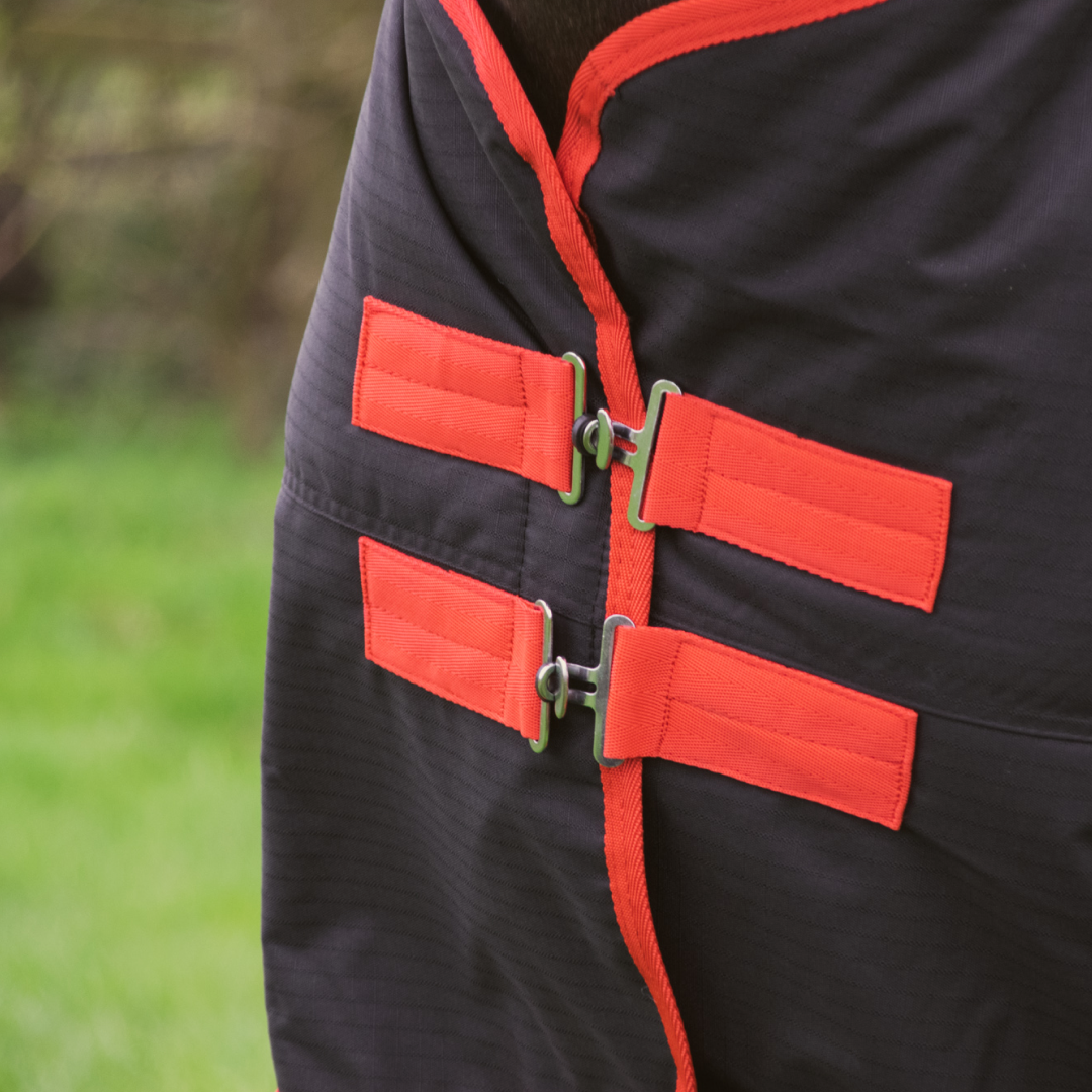 Cette couverture 100 % imperméable avec un garnissage de 200 g est idéale pour garder votre cheval au chaud et au sec.