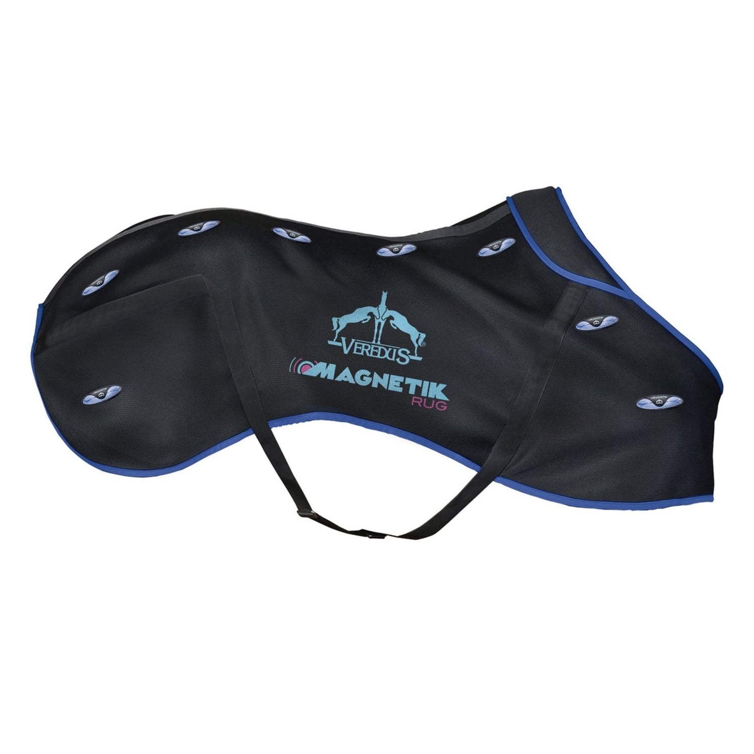 Made of micro-perforated breathable material, Magnetik Rug is equipped with 32 neodymium magnets that develop a power of 2400 Gauss each. The magnets are distributed the magnets are distributed in correspondance of the great dorsal, in the lumbar region and on the shoulders. Magnetik Rug has been designed to be used alone or under any winter rug. Ideal to prepare the horse before training or competition and to accelerate the recovery processes after the effort, used by the greatest champions. Non-invasive and non-doping device.