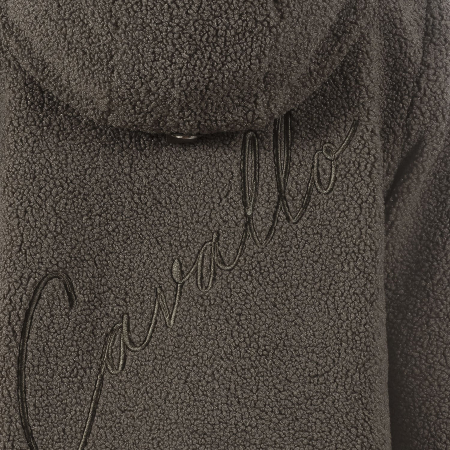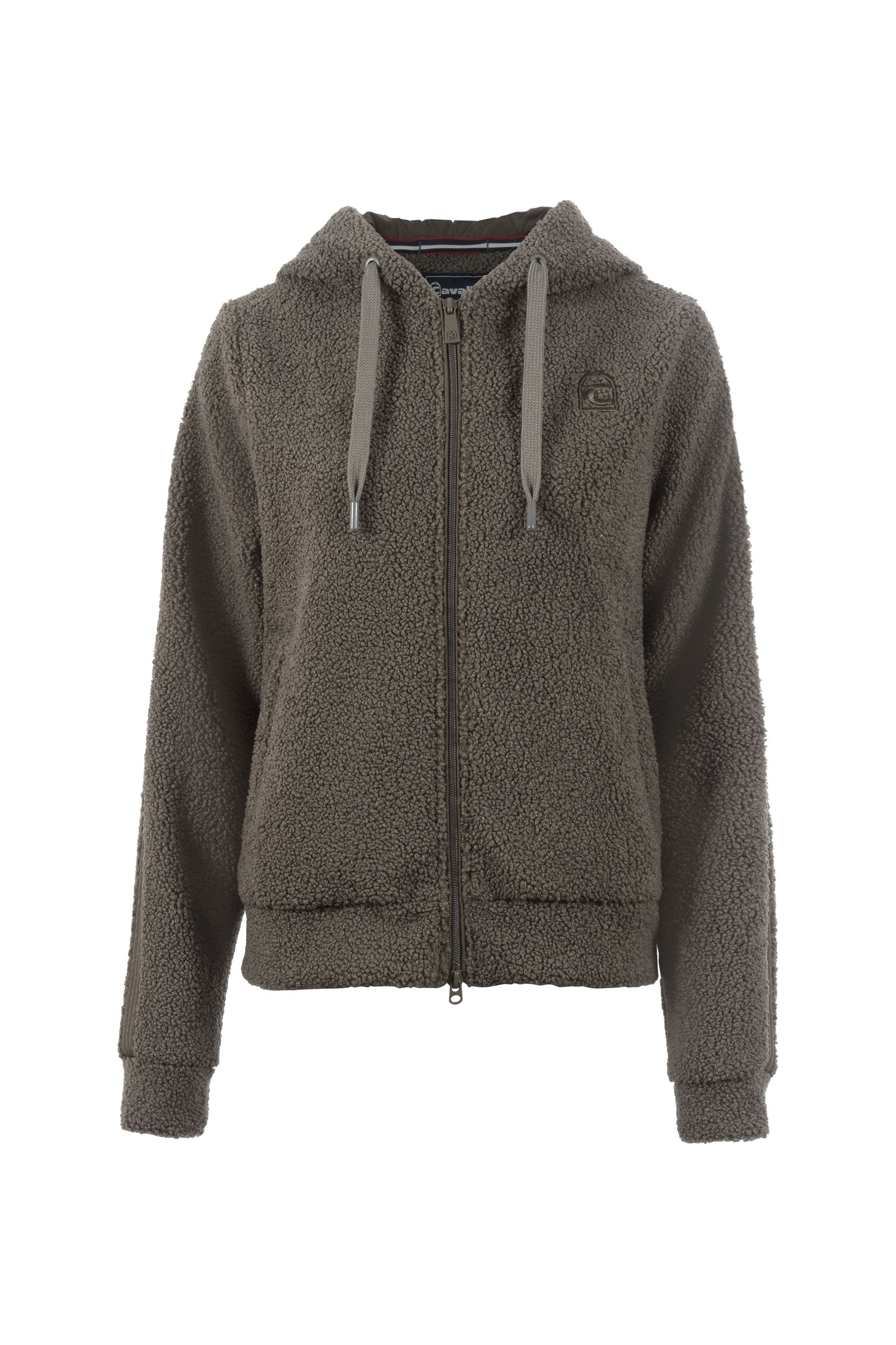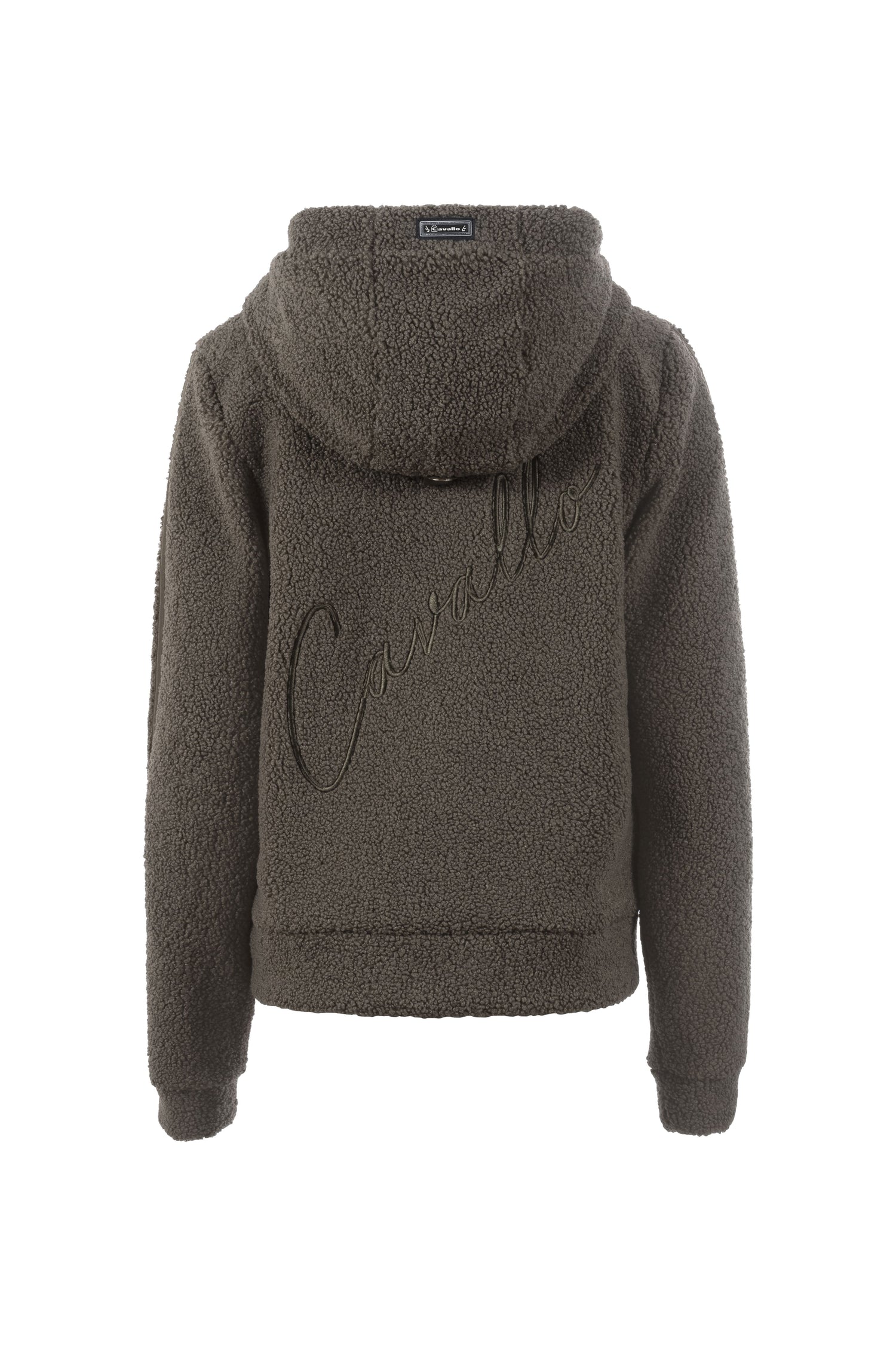 The Cavallo Melena Hoody Jacket is a luxurious and comfortable fleece jacket, featuring a soft teddy fleece lining with velvety woven fur inside the hood and tonal cords. It also includes a diamond quilted lining, a 2-way front zip with the iconic Cavallo zip pull, and two front pockets with zippers for added convenience. The left chest is adorned with a subtle Cavallo 3D stirrup embroidery, while a large, tonal Cavallo embroidery is placed diagonally on the back. The high-quality Cavallo label is also present on the back edge of the hood and on the left side seam.