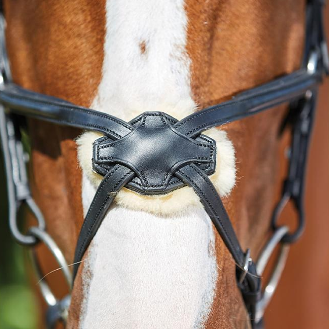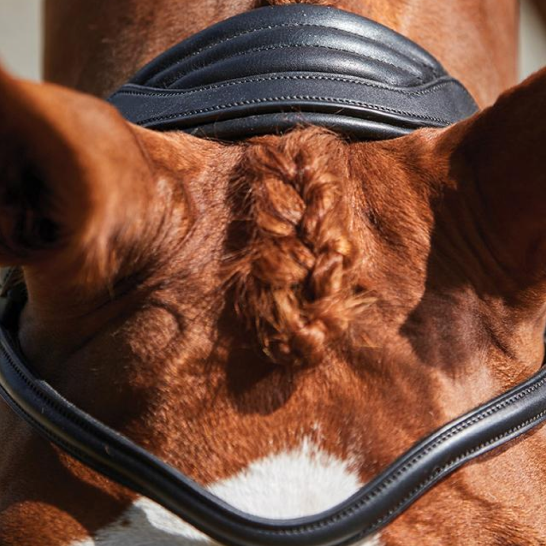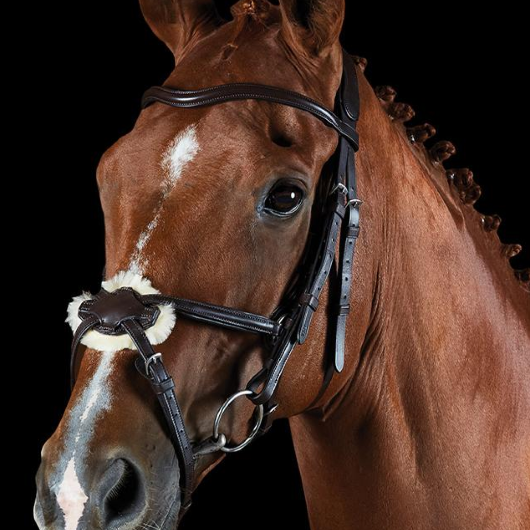 La bride Collegiate ComFiTec Grackle est fabriquée à partir de cuir européen de haute qualité. Le casque anatomique est doté d'un rembourrage super doux et est plus large entre les oreilles du cheval pour répartir la pression uniformément et confortablement. Doté d'un rembourrage sur le nez pour plus de confort. La polaire sur le nez est amovible pour un lavage facile.