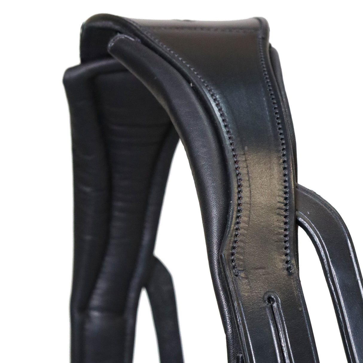 This headpiece benefits from anatomical 4D padding which acts as a buffer at the base of the ear along with a central air gap which avoids contact on the last two vertebra of the neck the padding extends below the browband to offer complete unrestricted comfort.