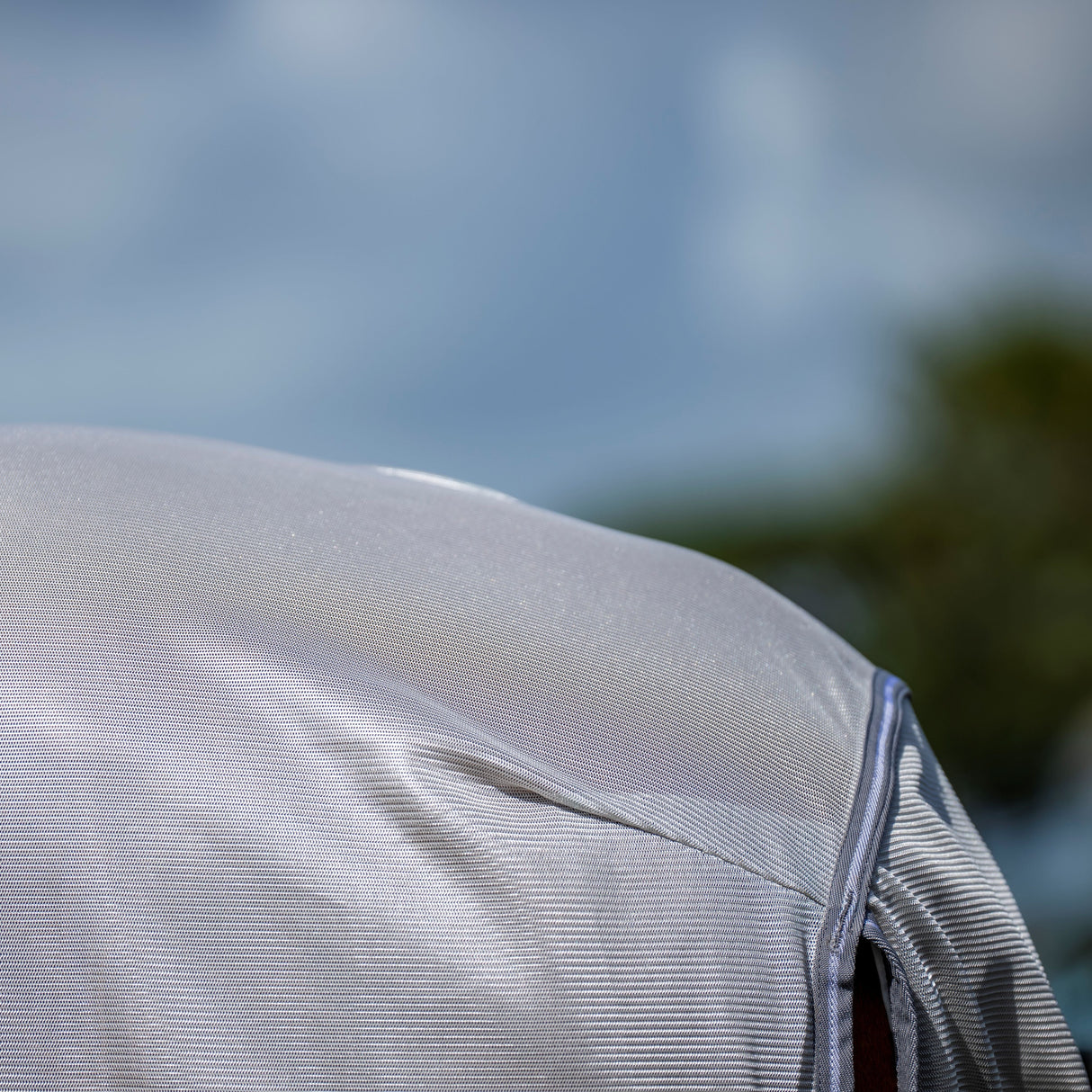 Made from soft, absorbent, and durable knitted Polyester, this rug provides 65% UV protection while reflecting the sun’s rays to keep your horse cool and comfortable. Perfect for Spring and Summer!